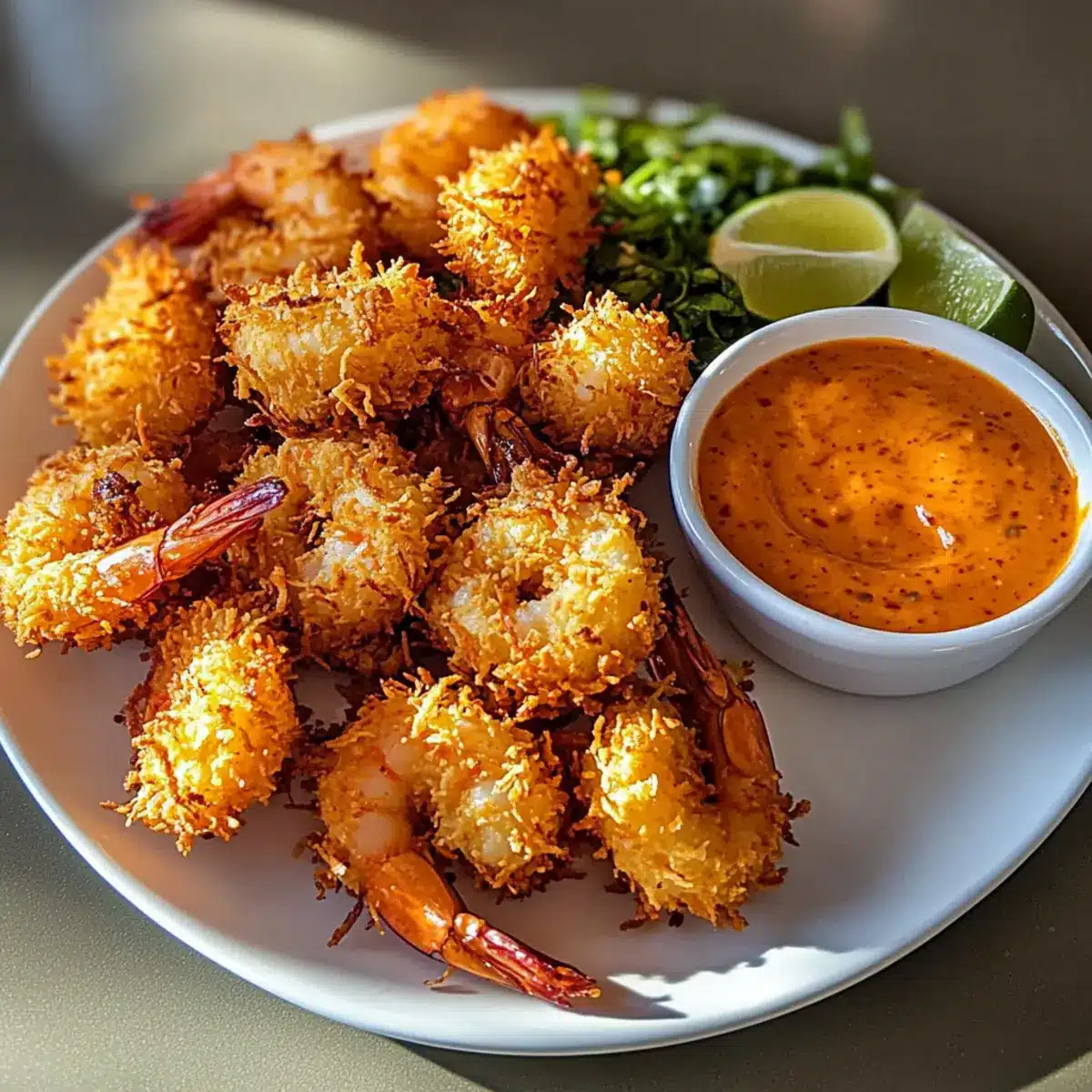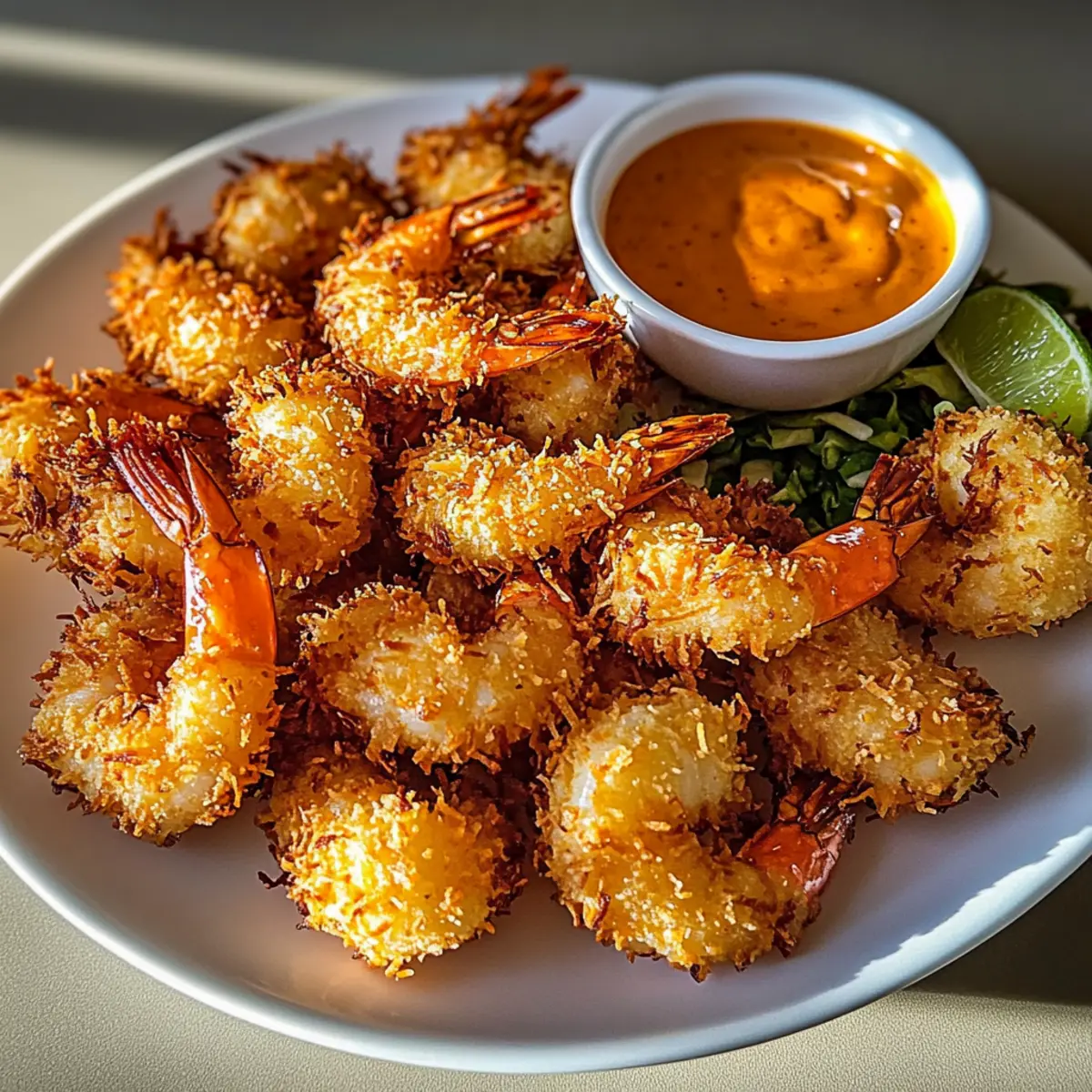 Present your delicious coconut shrimp warm, alongside the sweet chili mayo dipping sauce. This vibrant combination not only is visually appealing but invites your family and friends to enjoy the tropical flavors right at home.
