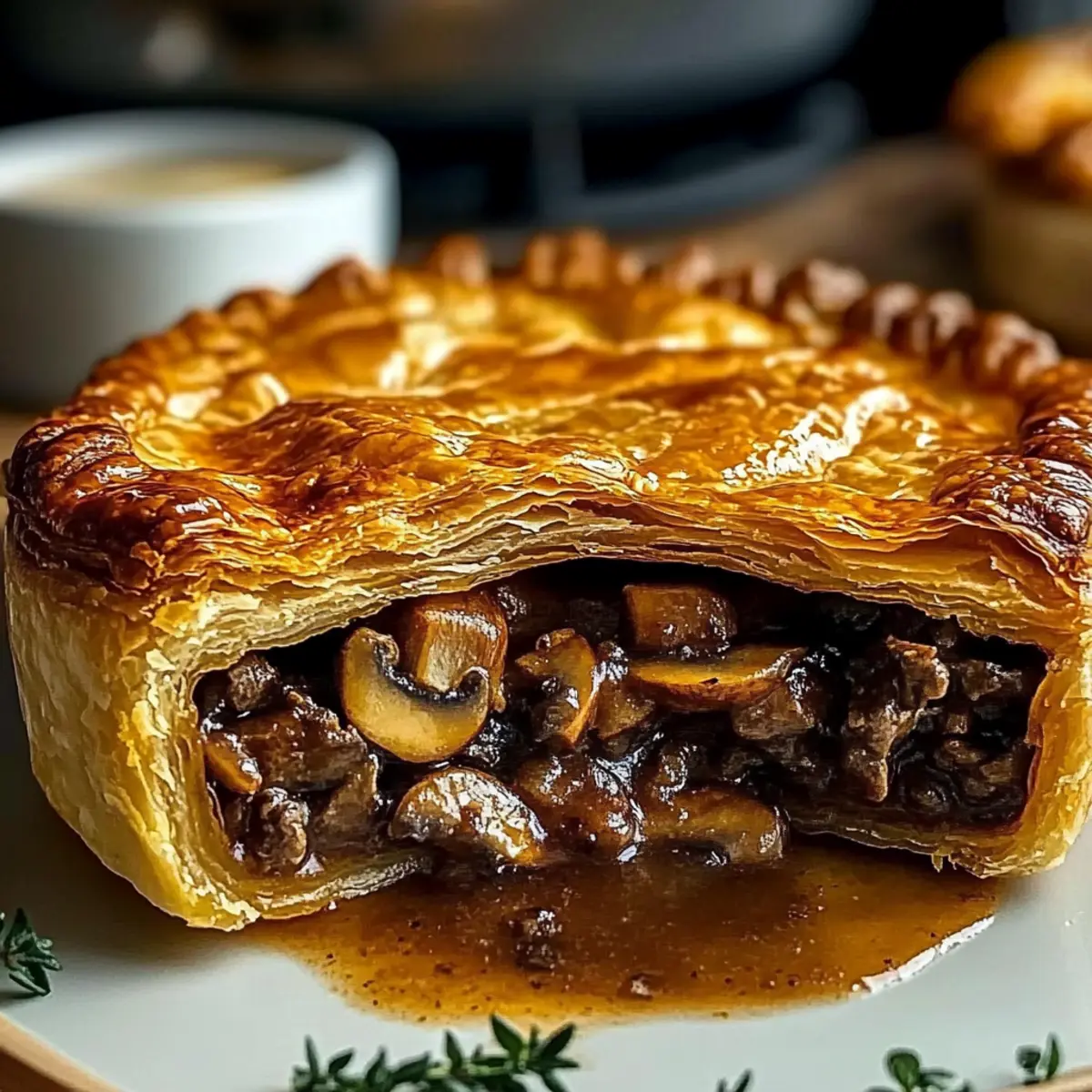 These Beef and Mushroom Pies are perfect for meal prep enthusiasts! You can prepare the filling up to 3 days in advance, allowing the flavors to meld beautifully. Simply follow the steps for browning the beef and creating the gravy, then let it cool completely before transferring to an airtight container. Refrigerate until you’re ready to assemble the pie. On baking day, roll out your puff pastry and fill your pie dish with the prepared filling. Cover with the pastry, brush with egg wash, and bake in a preheated oven for 25-30 minutes until golden brown. This way, you’ll enjoy hearty, comforting results with minimal effort!