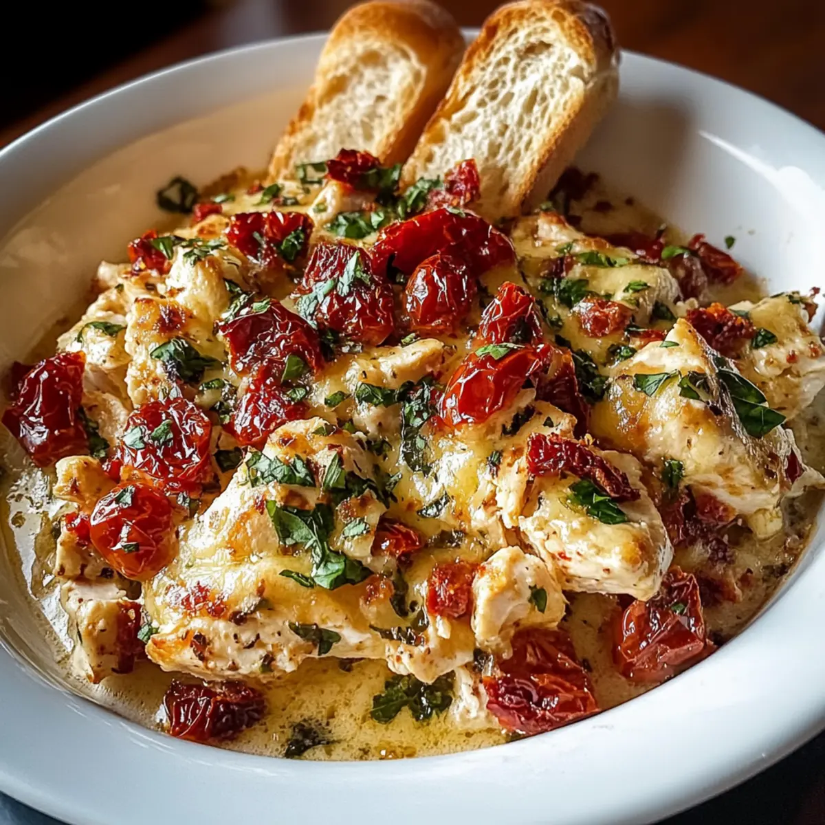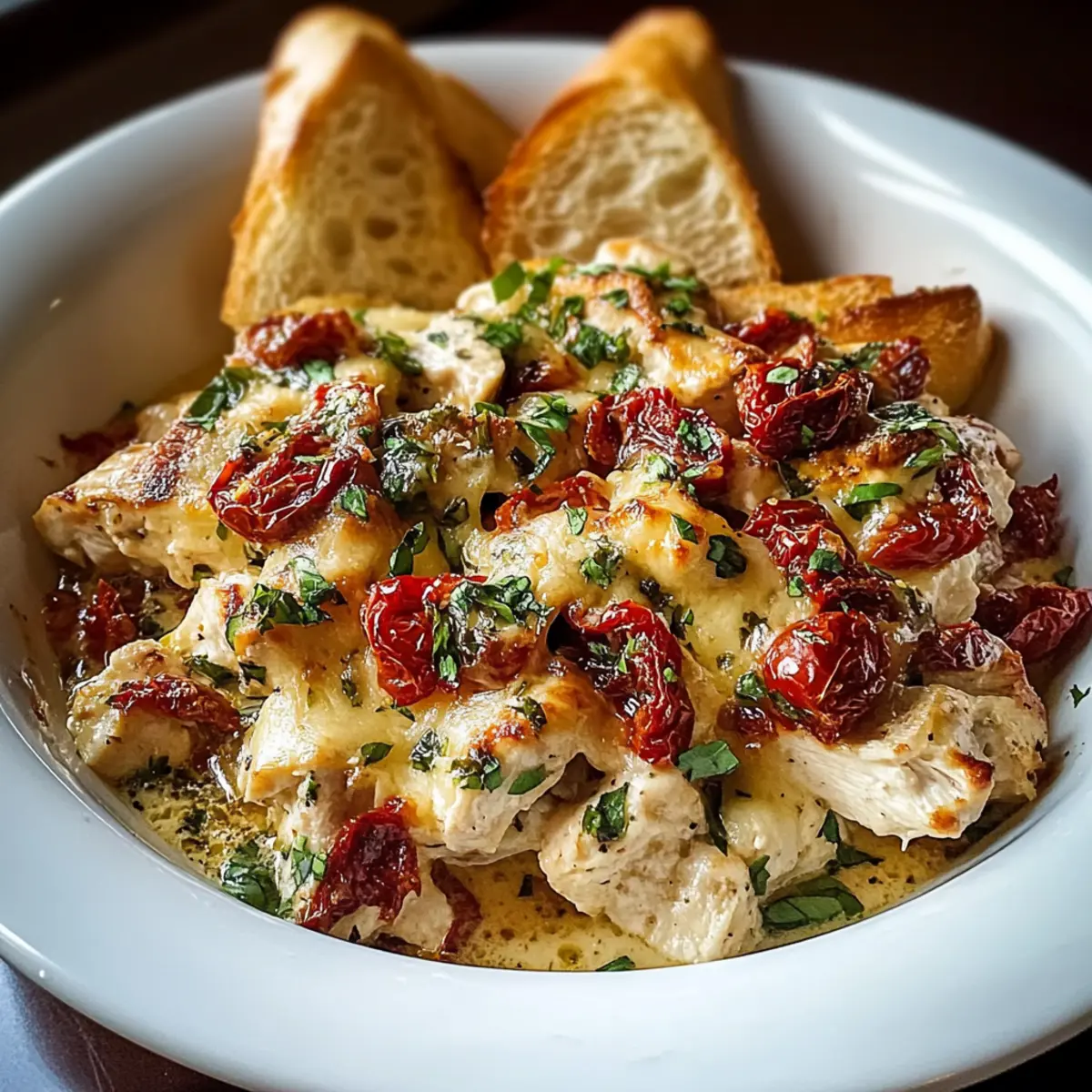 - Prevent Sogginess: Drizzle baguette slices with olive oil before baking to ensure a crisp topping that contrasts beautifully with the cheesy filling of your Bruschetta Chicken Casserole.