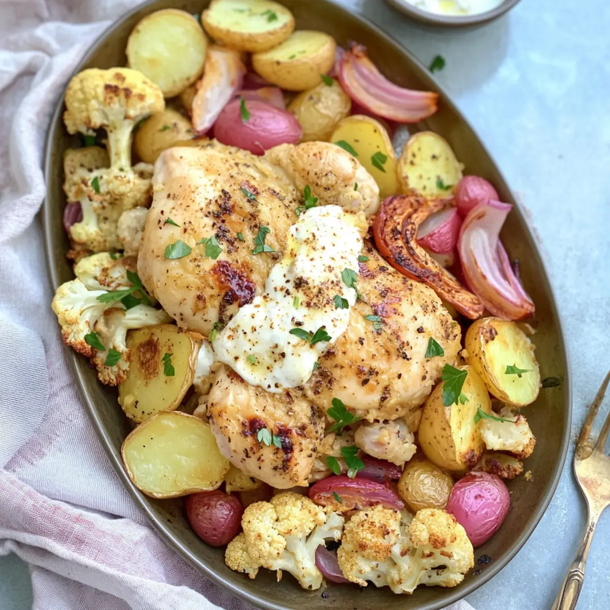 Lemony Sheet Pan Chicken with Potatoes and Cauliflower Bliss