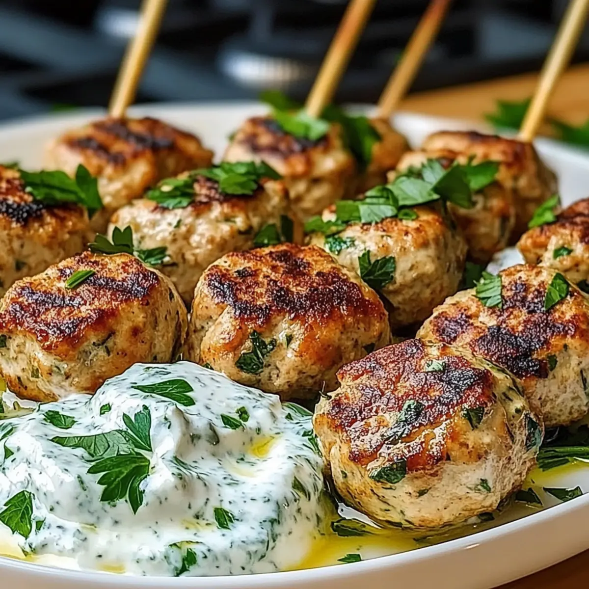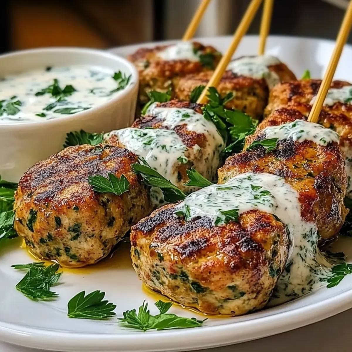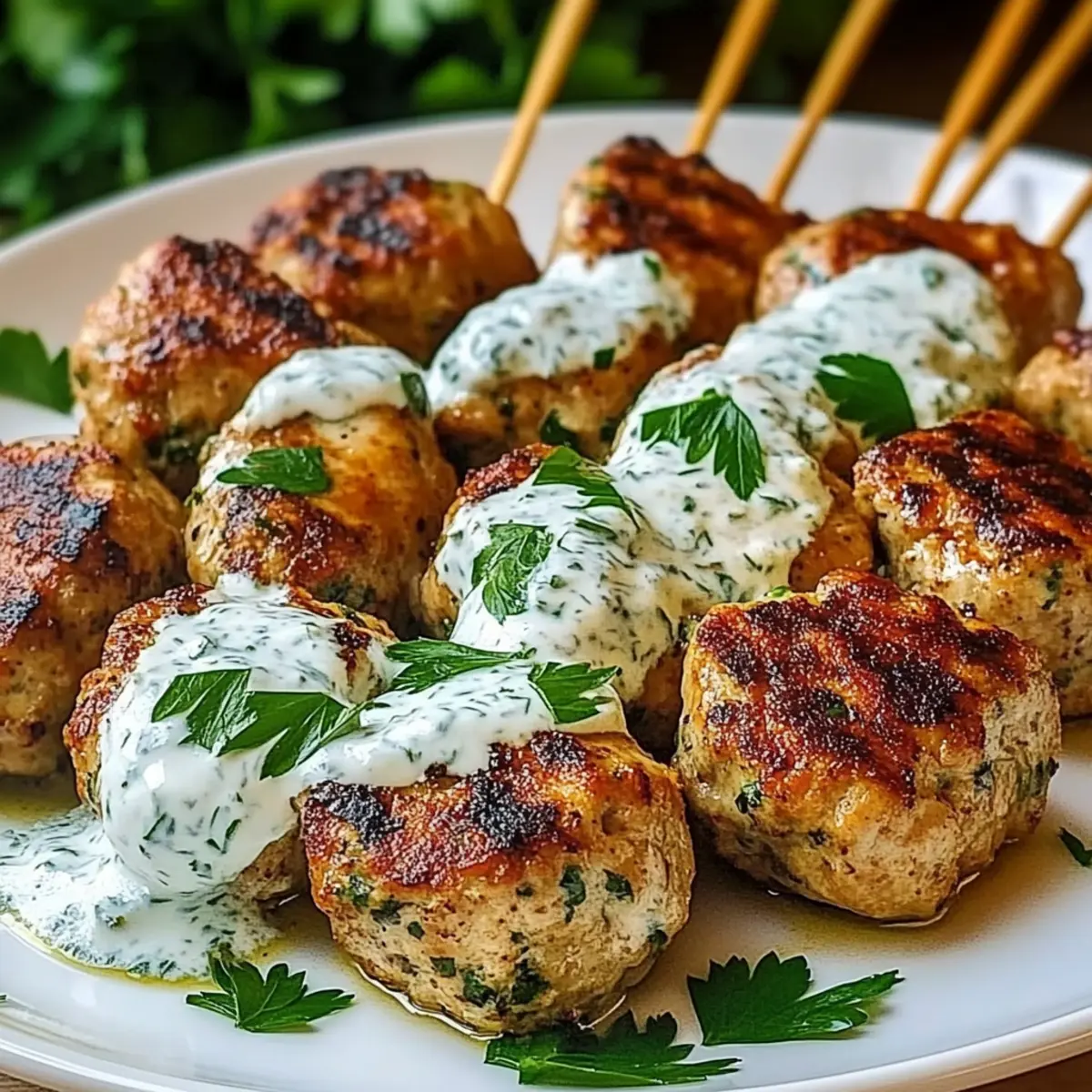Savory Chicken Kofta with Creamy Garlic Yogurt Sauce Delight
