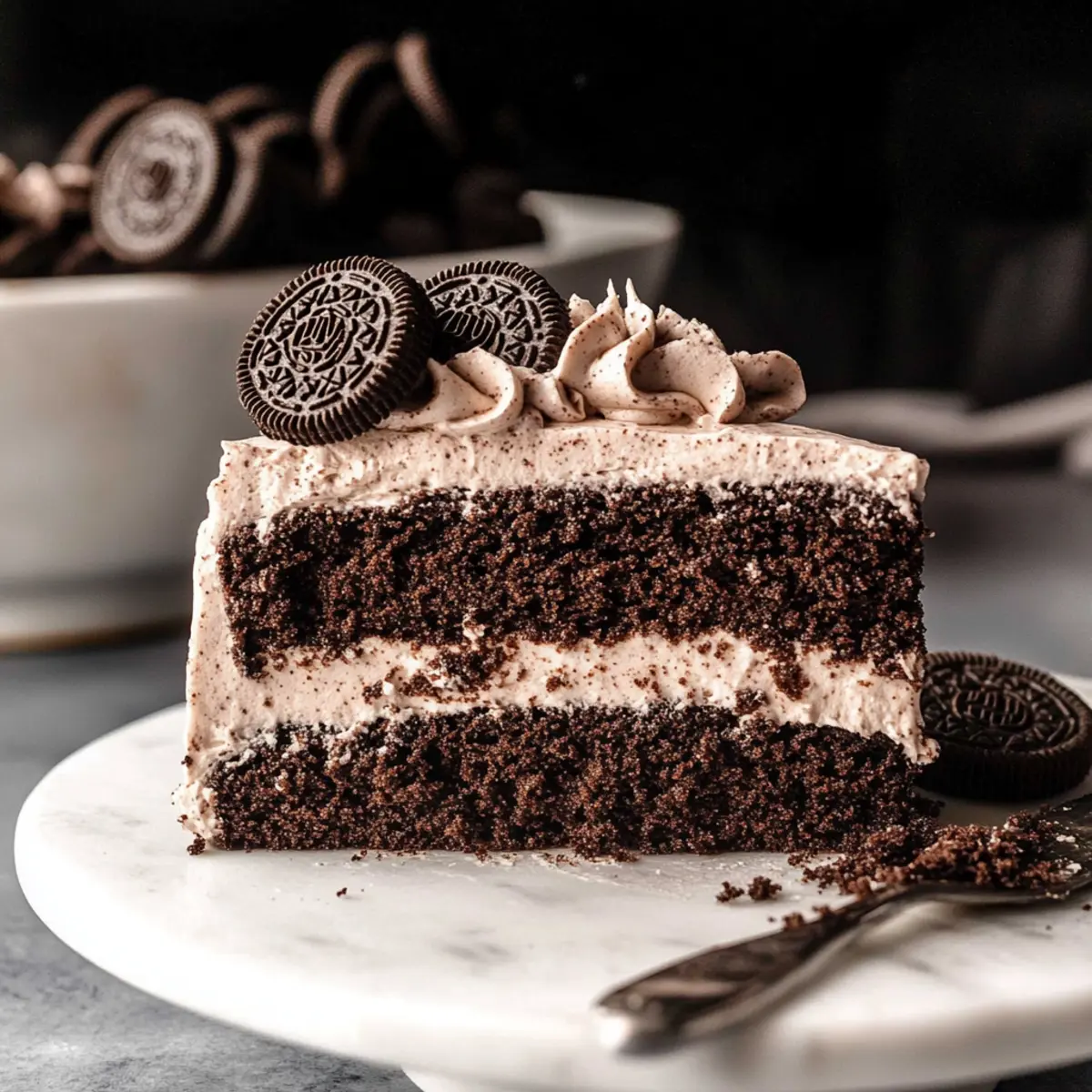Frosting Variations: Try a cream cheese Oreo frosting for a tangy twist, or mix crushed Oreos into whipped chocolate frosting for an extra chocolatey delight. Each twist brings its own special charm to the cake.