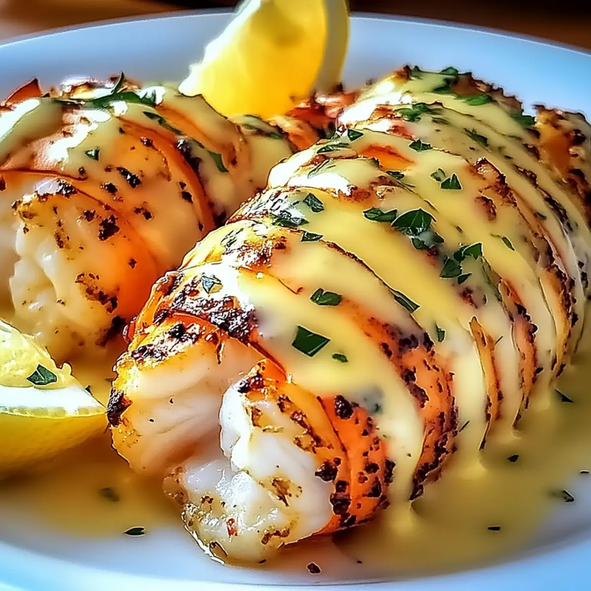 - Serve lobster tails on plates, drizzle with reserved garlic butter, and garnish with more parsley.