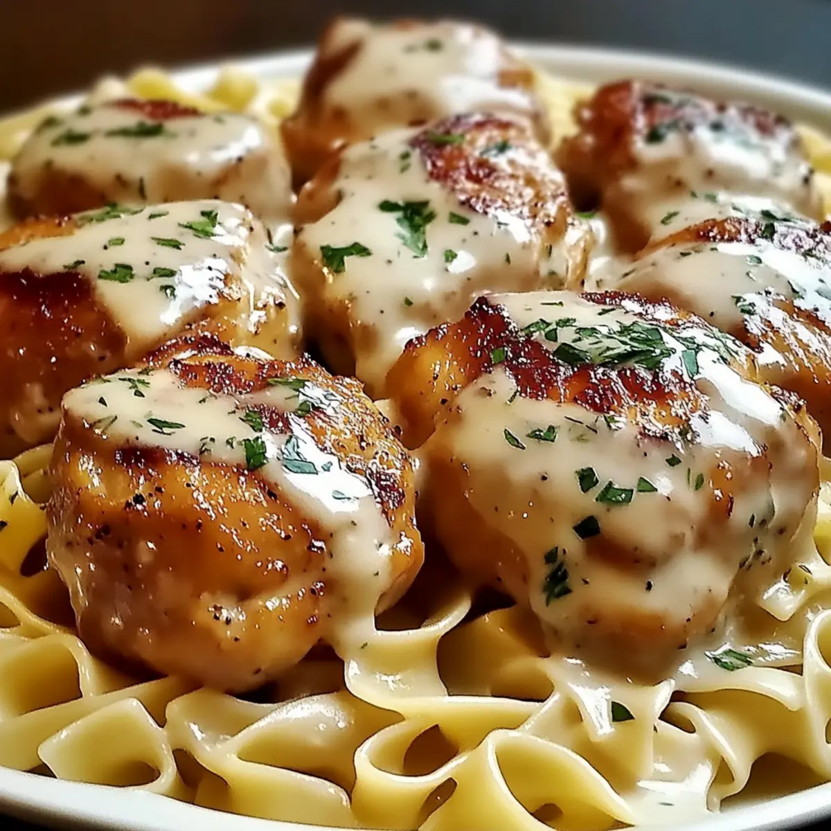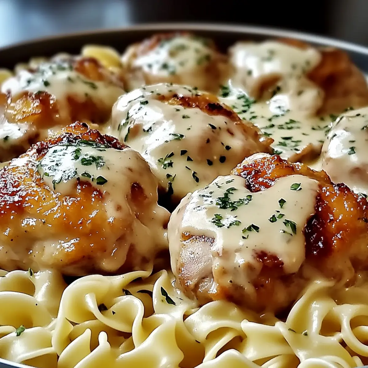 Creamy Herb Chicken Thighs Over Egg Noodles for Cozy Nights