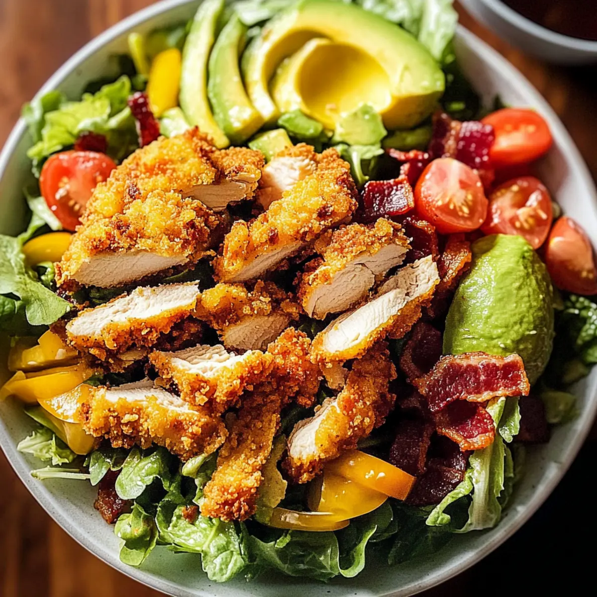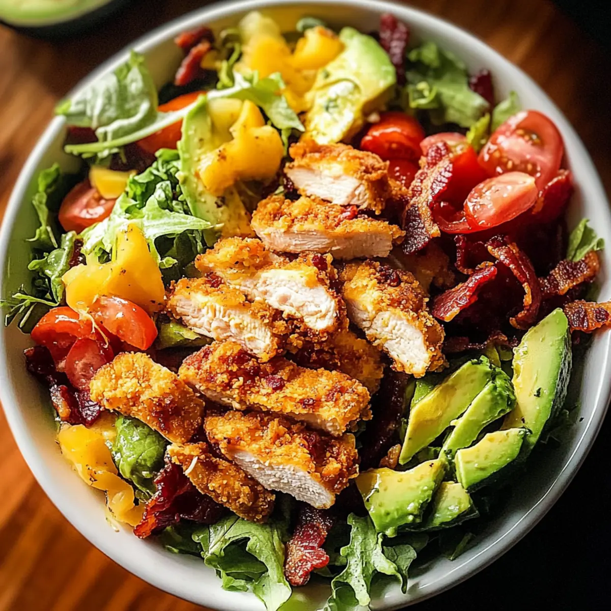 These Crispy Chicken Salad components are ideal for meal prep enthusiasts! You can cook the chicken and bacon up to 3 days in advance, allowing them to cool completely before refrigerating in airtight containers. For the freshest taste, prep the vegetables (tomatoes, avocado, and onion) and store them separately; this avoids sogginess and keeps your salad vibrant. Simply assemble your Crispy Chicken Salad on the day you plan to serve it—just toss the greens, toppings, and dressing together, and add the sliced chicken on top right before you dig in. This way, you’ll enjoy restaurant-quality results with minimal effort and maximum flavor!