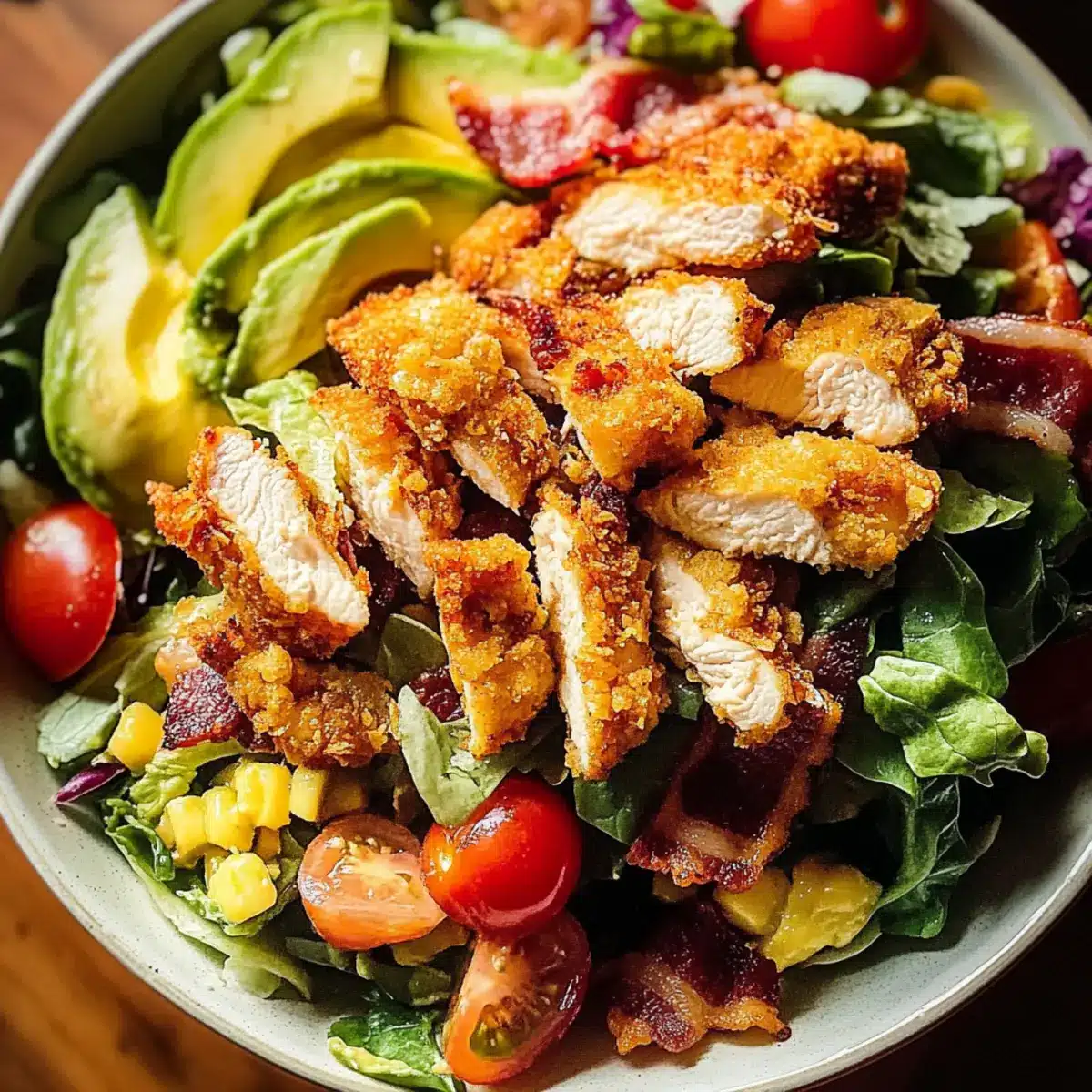 Flavor Explosion: Each element in this salad sings with flavor! The crispy chicken and smoky bacon create a satisfying crunch that’s hard to resist.