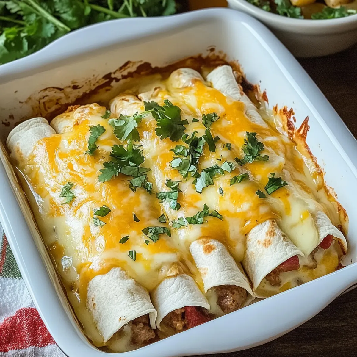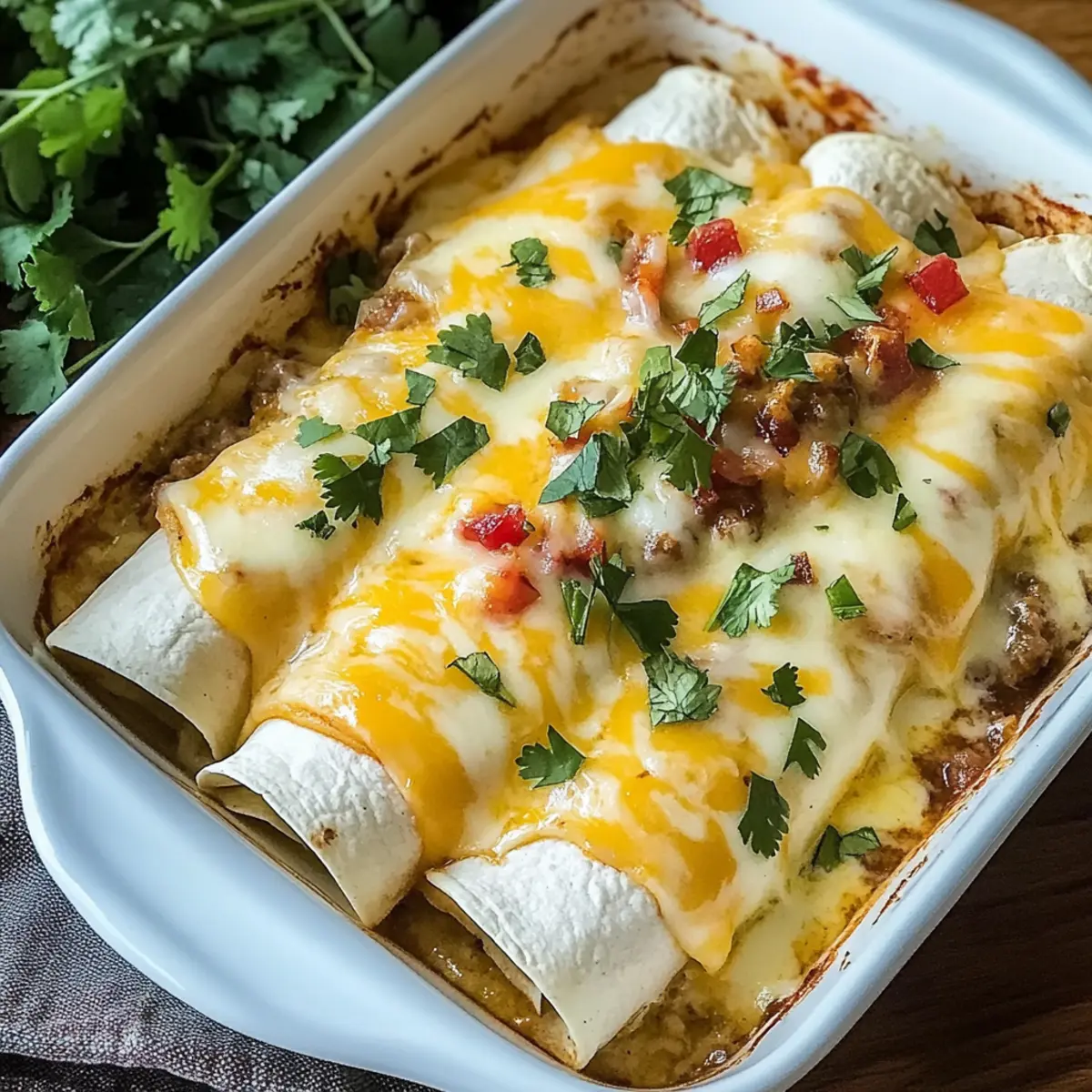 These Delicious Breakfast Enchiladas for a Cozy Morning Feast are perfect for meal prep enthusiasts! You can prepare the filling (bacon, sausage, potatoes, cheese, and salsa) up to 3 days in advance, storing it in an airtight container in the refrigerator. Just before baking, assemble the enchiladas by rolling the tortillas with the filling and pouring the custard over them. Allowing them to soak for 10-15 minutes before baking enhances creaminess. When you’re ready to serve, bake them straight from the fridge; there’s no need to thaw, but you may need to extend the baking time by a few minutes for perfectly golden results. Enjoy a delicious breakfast with minimal effort!