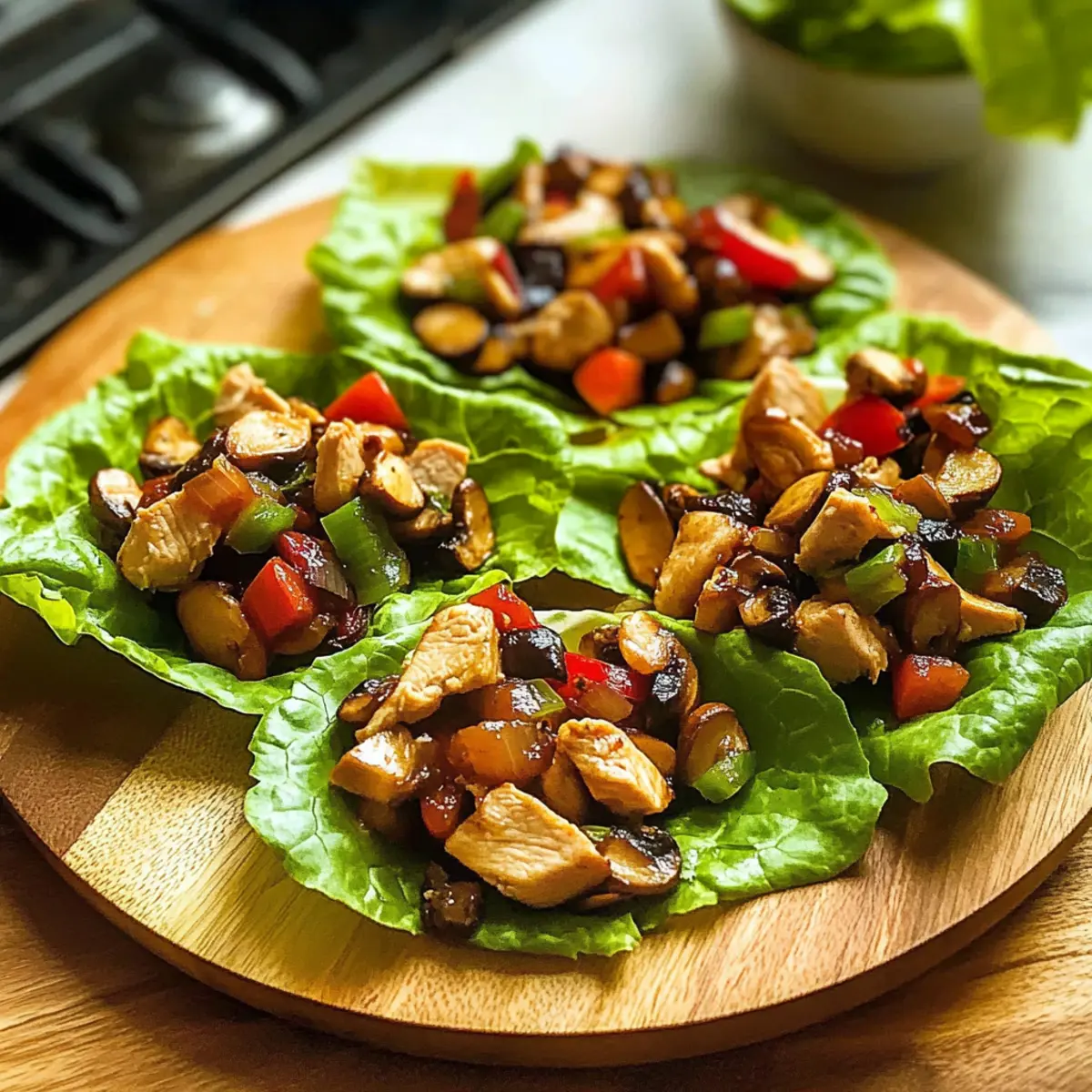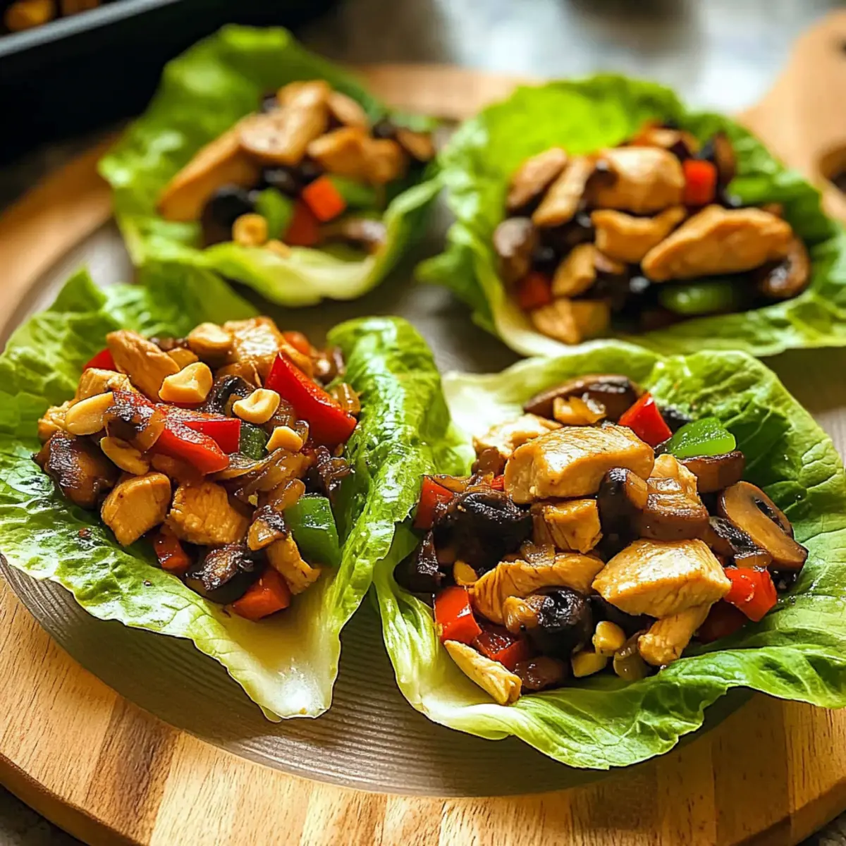 To serve, spoon generous portions of the chicken and vegetable mixture into the center of crisp lettuce leaves. Garnish with chopped green onions and sprinkle optional nuts for added crunch. These delightful wraps are best enjoyed fresh, allowing the combination of flavors and textures to shine as a healthy dinner option.