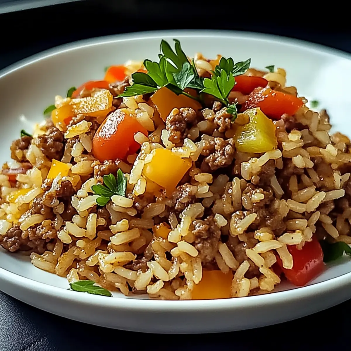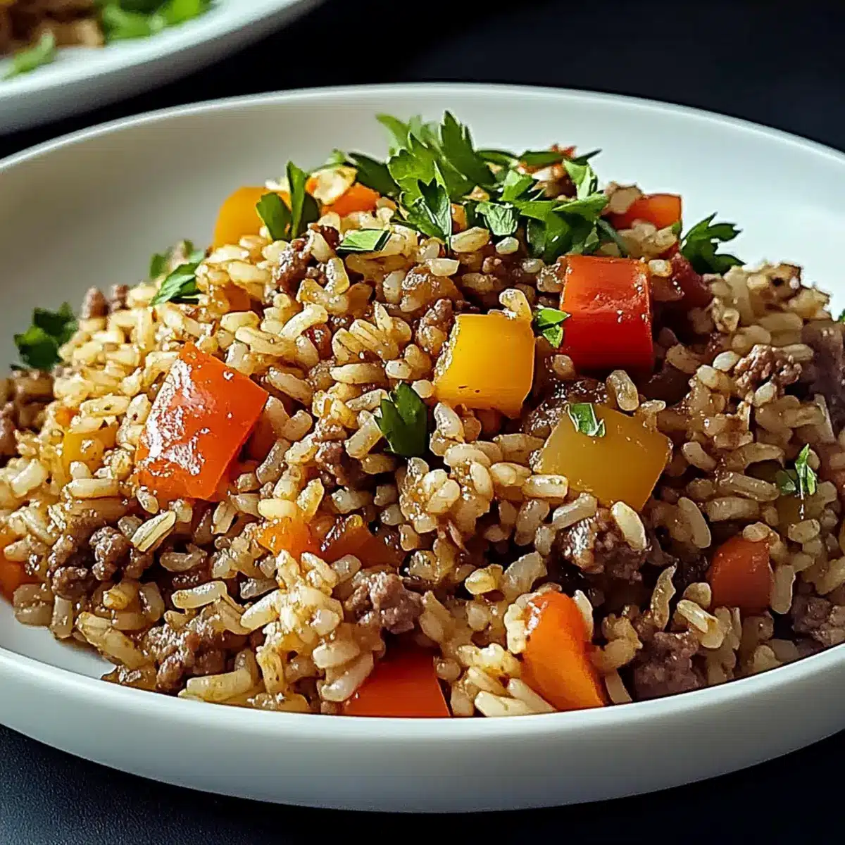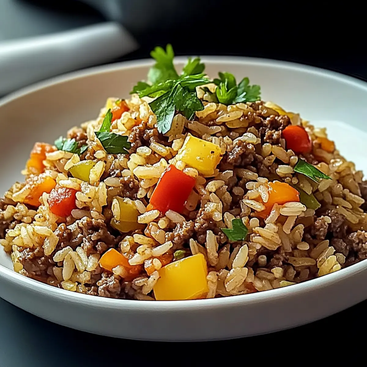 Hearty, Comforting Dish: This recipe combines savory ground beef with fragrant rice and colorful veggies, creating a filling meal that warms the soul.