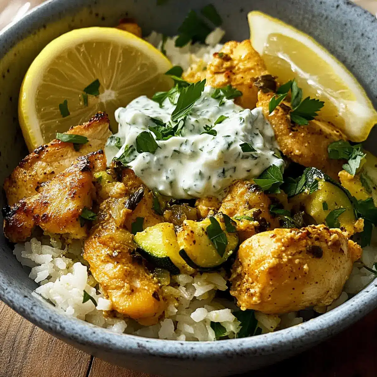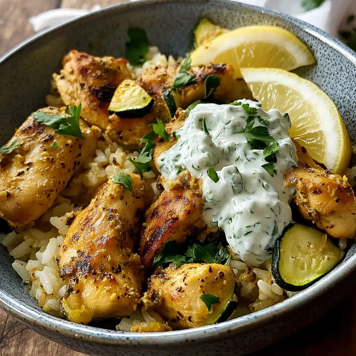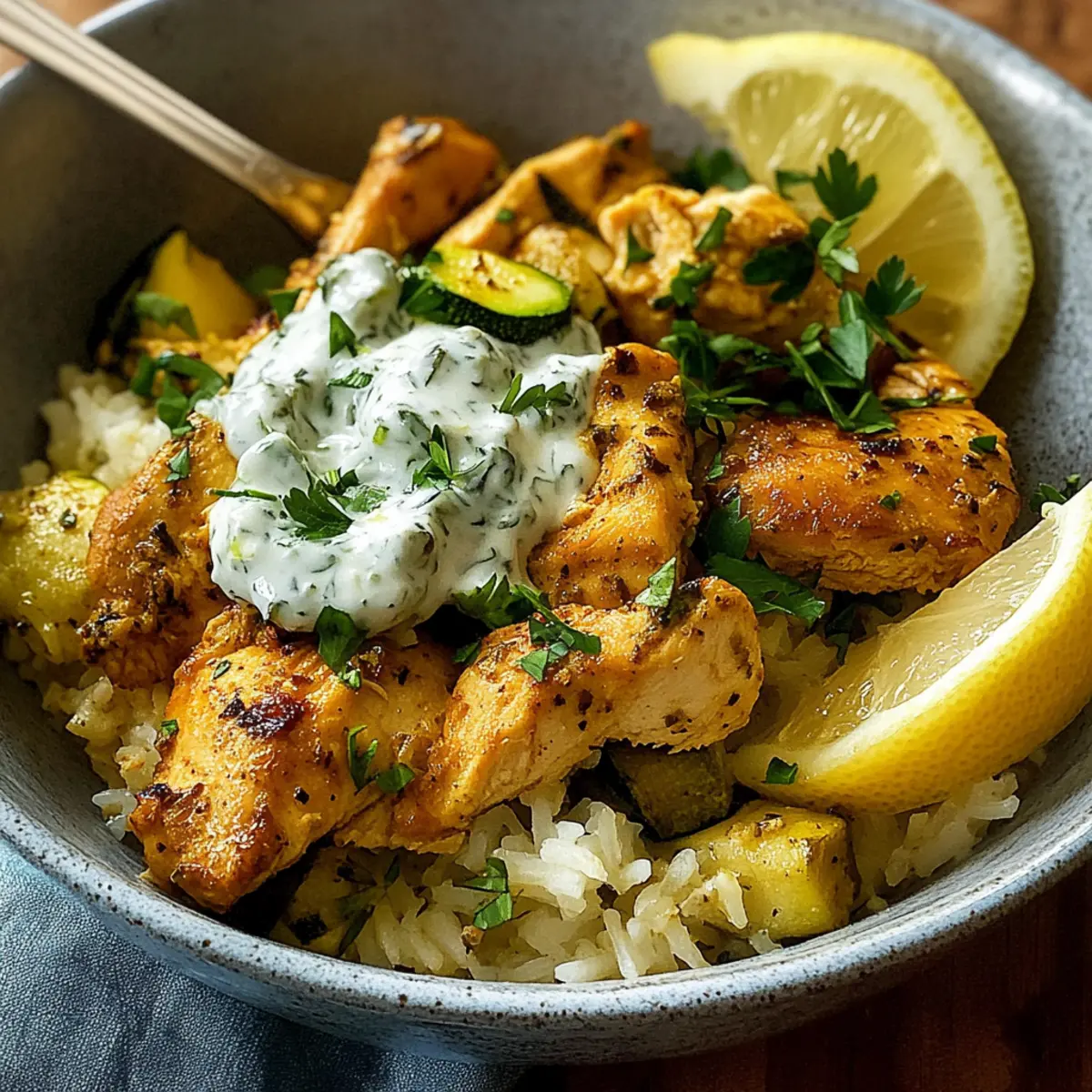 Flavor Explosion: The combination of zesty lemon, fresh herbs, and creamy tzatziki transforms basic chicken and rice into a Mediterranean feast.