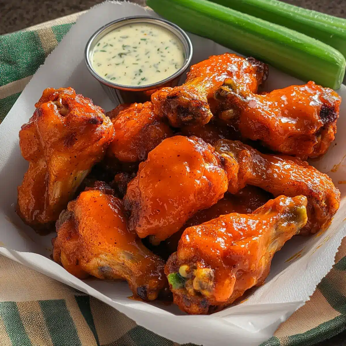 - Creamy Ranch Dressing: The cool, creamy texture of ranch dressing perfectly balances the spicy heat of the wings, making each bite a delightful experience.