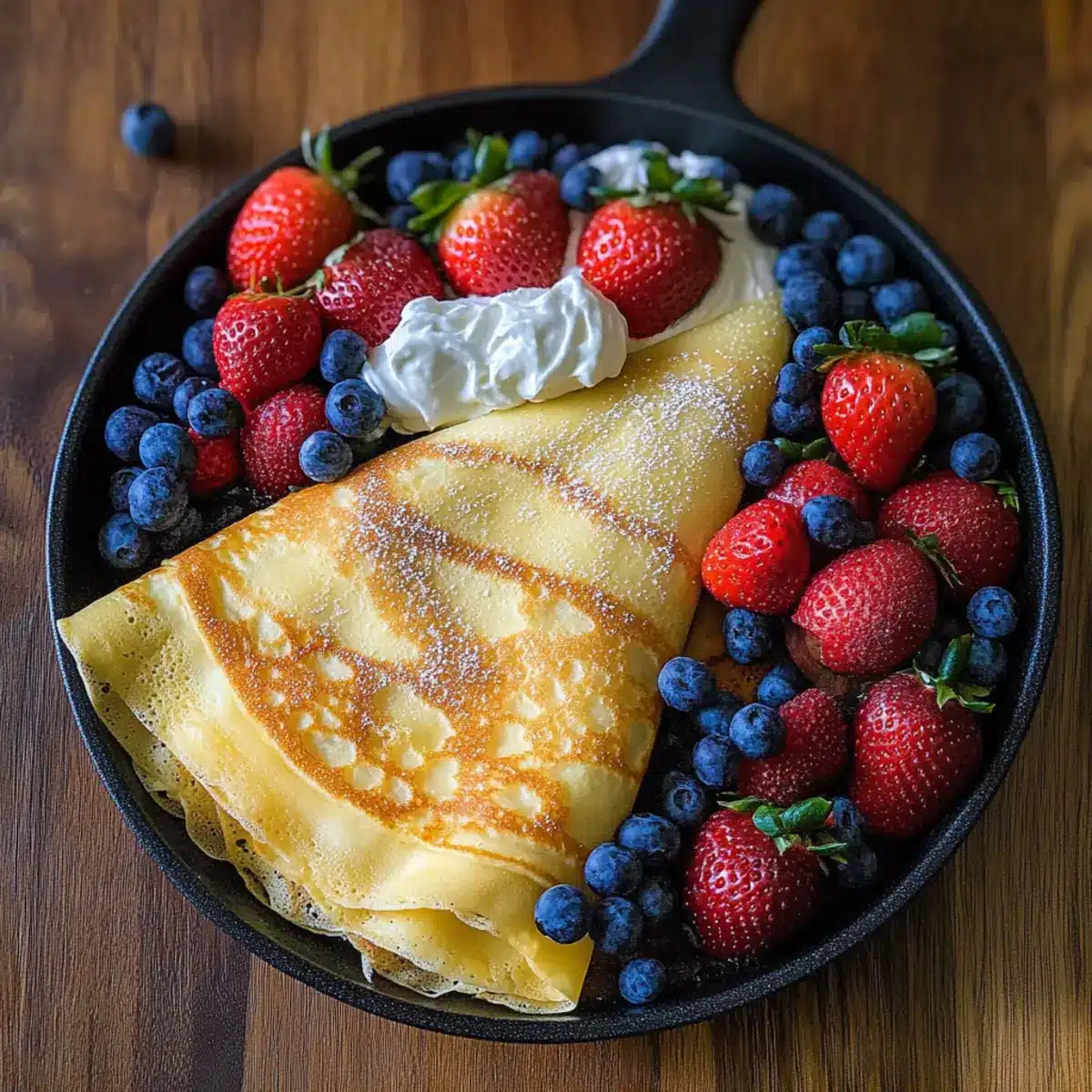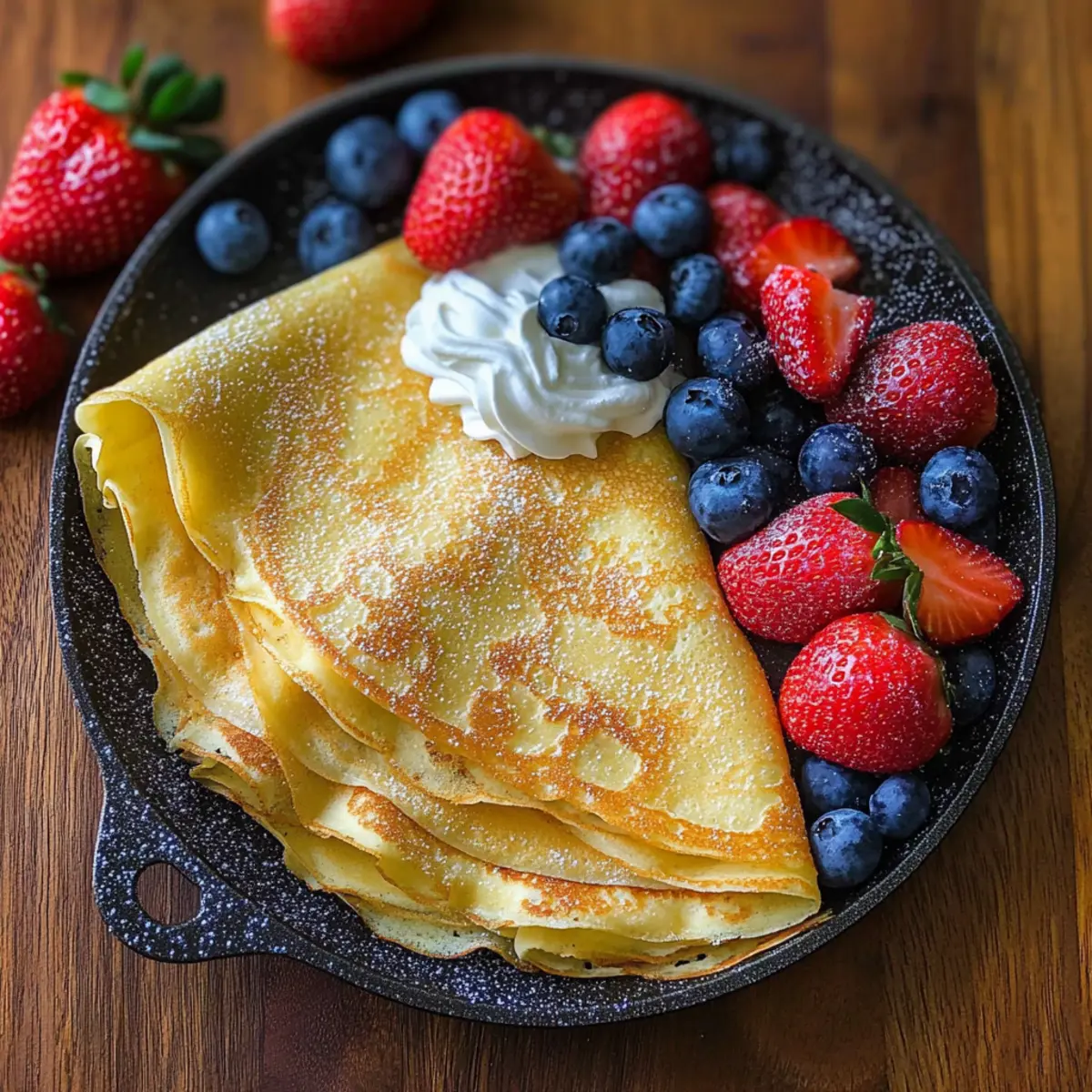 Fresh Berries: The natural sweetness and tartness of fresh berries contrast beautifully with the delicate crepes, enhancing both flavor and presentation. Toss in a sprinkle of powdered sugar for elegance!