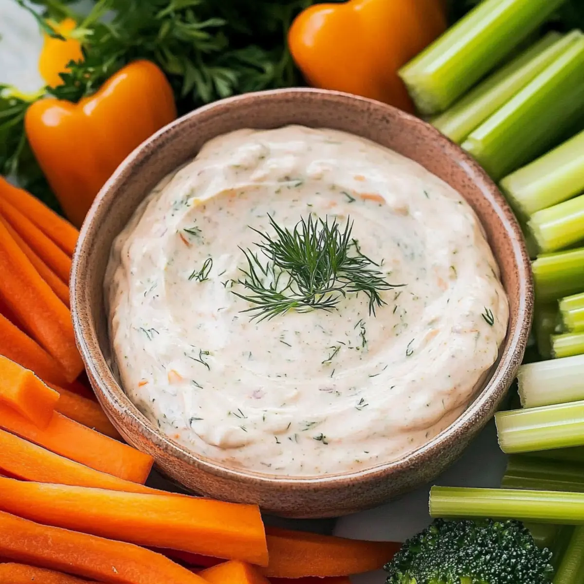 After chilling, remove the dip from the fridge and give it a good stir. Transfer it to a serving bowl and arrange a colorful platter of fresh vegetables such as carrots, celery, and bell peppers around it. Your Easy Veggie Dip Recipe is now ready to shine at your gathering! Watch as friends and family eagerly dig in, enjoying every creamy and flavorful bite.
