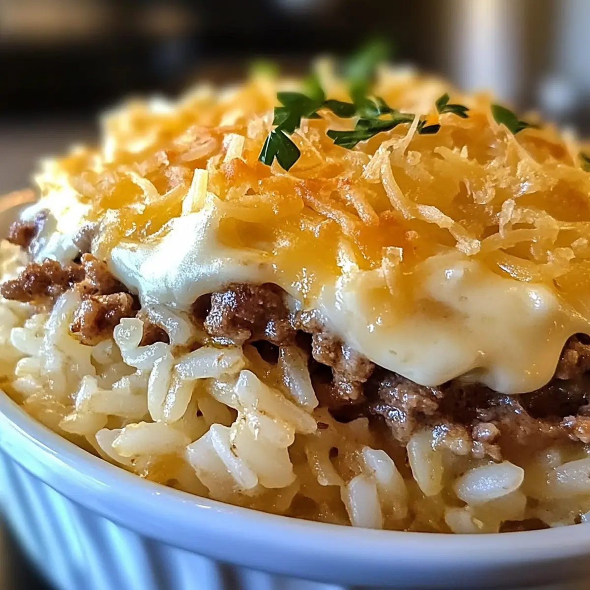 The comforting aroma of savory French Onion Ground Beef and Rice Casserole wafts through my kitchen, instantly enveloping me in memories of family dinners. This one-pan wonder combines the deep, caramelized sweetness of onions with hearty ground beef and fluffy rice, making it the perfect solution for hectic weeknight meals or cozy gatherings. What I love most is that it’s incredibly adaptable—whether you want to spice it up with a kick or sneak in some greens, the possibilities are endless! Not to mention, it’s a budget-friendly recipe that leaves your wallet happy and your tummy satisfied. Are you ready to dive into this delicious comfort food classic? Let’s get cooking!
