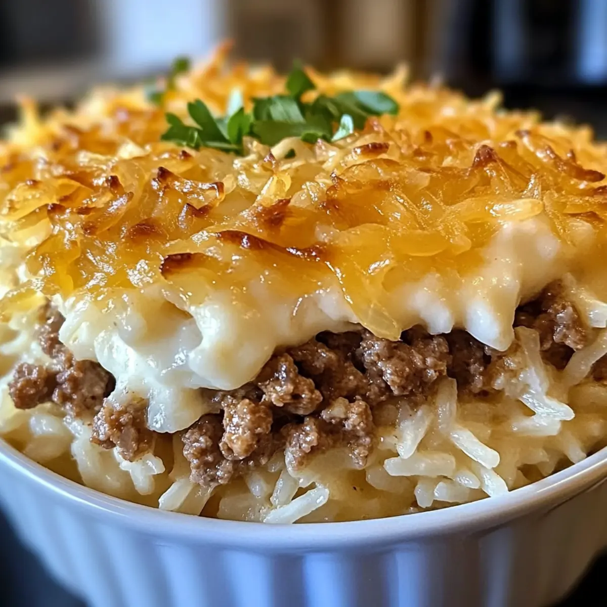 Of course! If you’re catering to specific dietary restrictions, consider swapping the ground beef for a plant-based option like lentils or mushrooms for a vegetarian version. Ensure to also check the ingredients in your French onion soup and beef consommé for allergens such as gluten or dairy. If you have pets, it’s always wise to keep this casserole away from them, as onions can be harmful to dogs and cats.