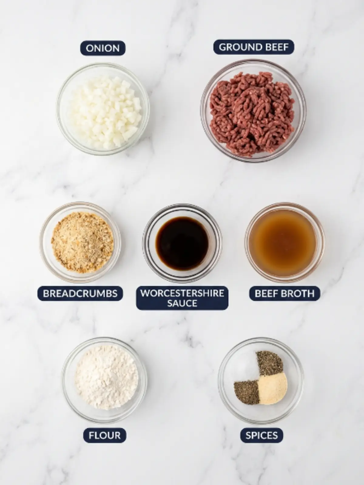 Dive into the goodness of Hamburger Steak and Gravy with these straightforward ingredients and watch as it transforms into a comforting masterpiece on your dinner table!