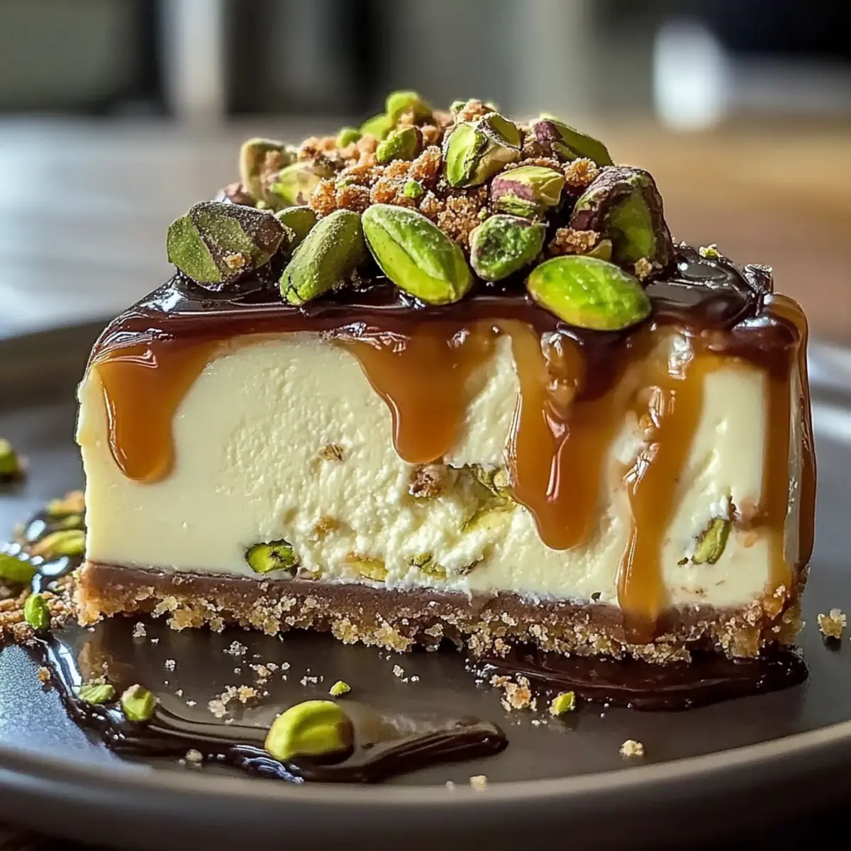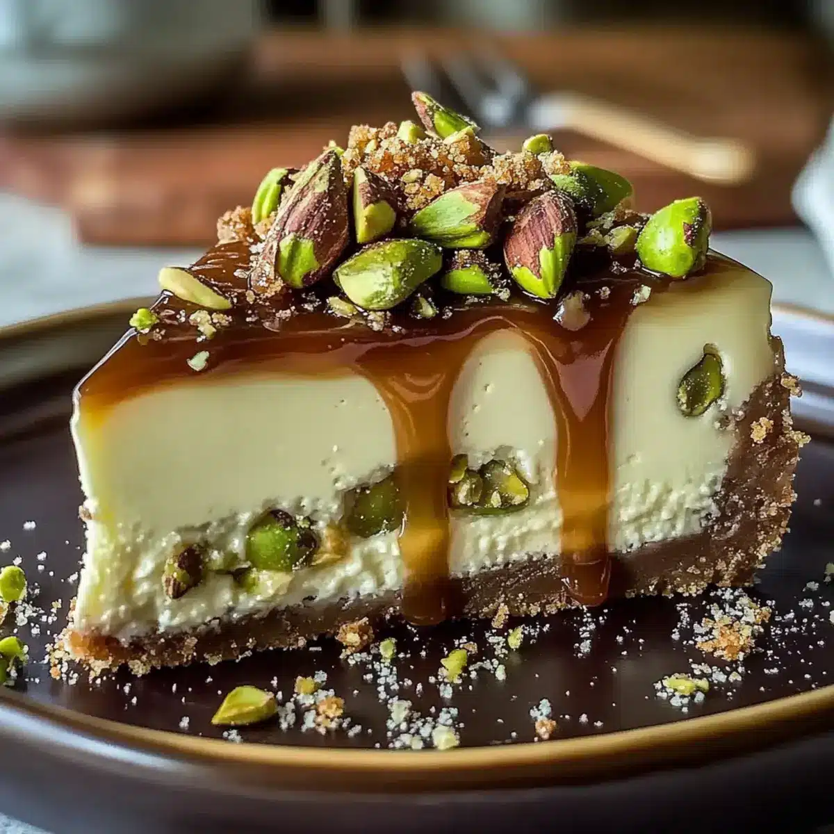 Fresh Toppings: Add chopped pistachios and caramel sauce right before serving to ensure they remain crunchy and visually appealing. This way, every slice is a delightful surprise!