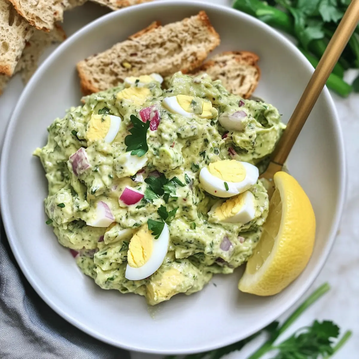 As I opened my fridge, the vibrant green of ripe avocados reminded me that simple ingredients can create magic, even on the busiest days. That’s when I decided to whip up a Herby Avocado Egg Salad (10-minute!). This no-cook wonder is a fast, healthy alternative to your average lunch. By swapping out mayo for creamy Greek yogurt, I’ve discovered a tangy twist that complements the rich avocados perfectly while delivering a hearty boost of protein. Not only is this salad a breeze to prepare, but it’s also packed with nutritious healthy fats and fresh herbs, making it a guilt-free delight. Whether enjoyed on a bed of greens, slathered on multigrain toast, or scooped up with crackers, this recipe will keep you fueled for whatever adventures your day holds. Ready to elevate your lunch game?