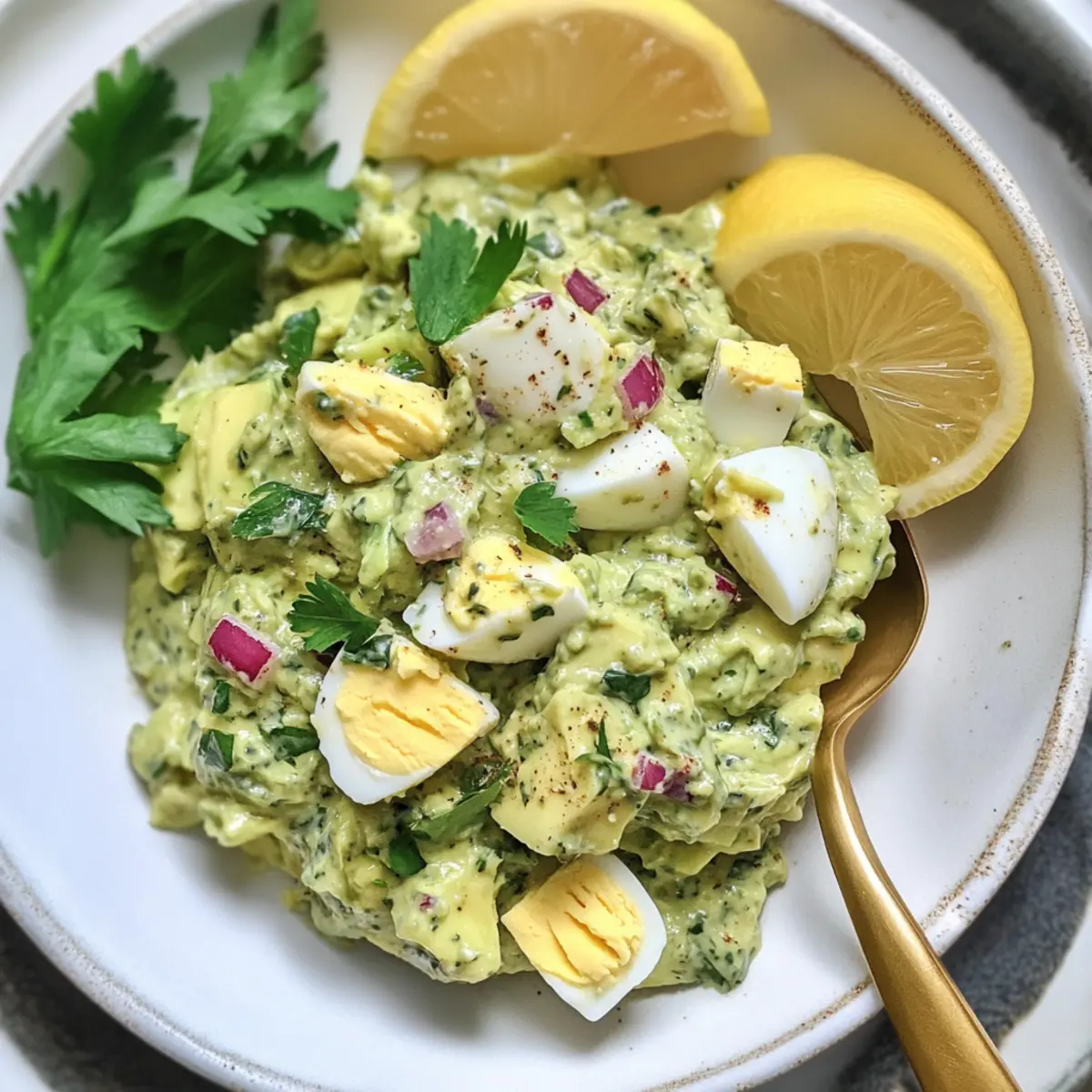 These Herby Avocado Egg Salad preparations are a game-changer for busy home cooks! You can boil the eggs and prepare the avocado-yogurt mixture up to 24 hours in advance. To maximize freshness, store the boiled eggs and the avocado mix separately in airtight containers—this helps prevent the avocado from browning. When you’re ready to enjoy your meal, simply combine the egg mixture with the avocado base, add in fresh herbs, lemon juice, and season to taste. This way, you’ll have a quick, delicious, and healthy lunch option ready to go, making mealtime stress a thing of the past!