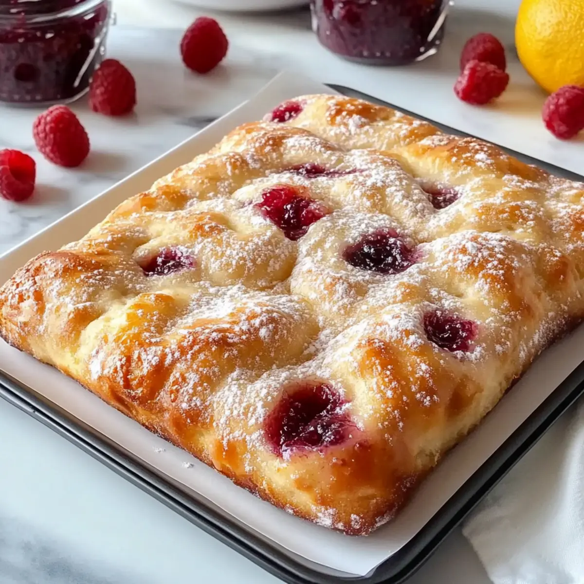 As I placed the warm loaf on the kitchen counter, the irresistible aroma wafted through the air, transporting me to the comforting embrace of my favorite bakery. With each slice of this Homemade Jam Donut Focaccia, fluffy dough gives way to pockets of luscious raspberry preserves, making it an epic breakfast treat or delightful addition to any brunch spread. This recipe is perfect for those slow weekend mornings; it’s not only a fun way to elevate a classic favorite but also a crowd-pleaser that brings smiles around the table. Imagine serving a warm slice topped with a dusting of confectioners’ sugar, paired with fresh berries and whipped cream. Can you resist taking a bite? Let’s dive into the magic of this sweet sensation together!