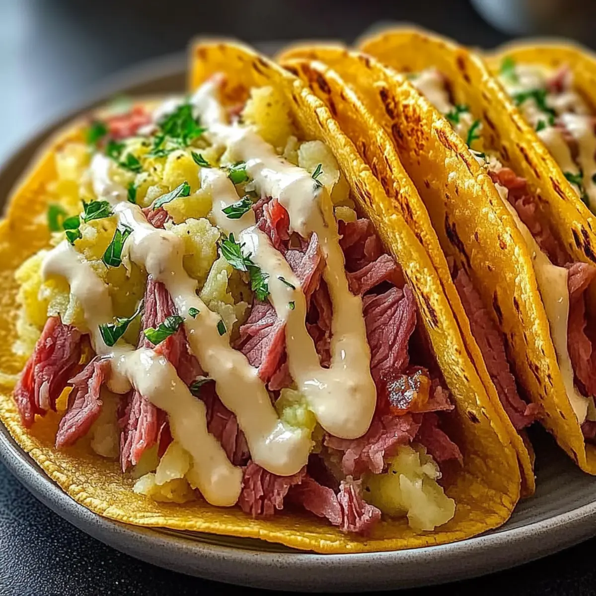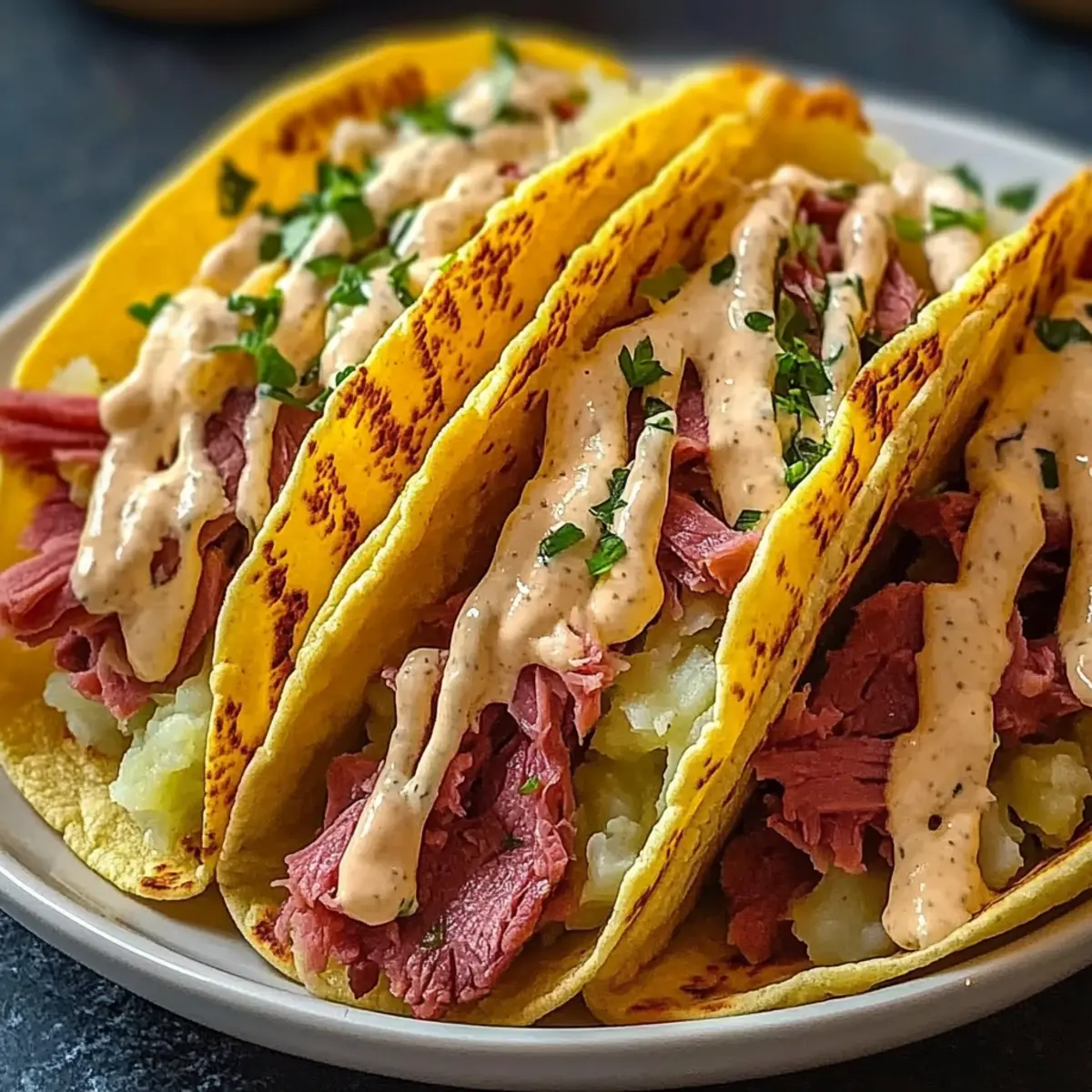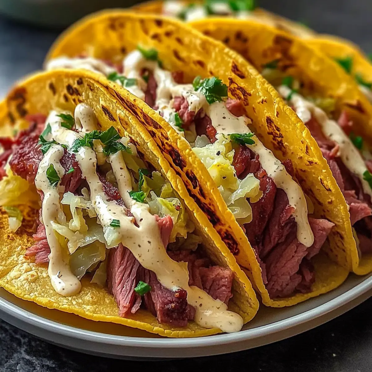 Absolutely! If making these tacos for friends or family, be certain to ask about any allergies. For vegetarian options, consider using smoked tempeh or roasted mushrooms in place of corned beef. Always check the dressing; some store-bought versions may contain gluten or preservatives. If you’d like a gluten-free taco, use corn tortillas, as they’re usually made without wheat.