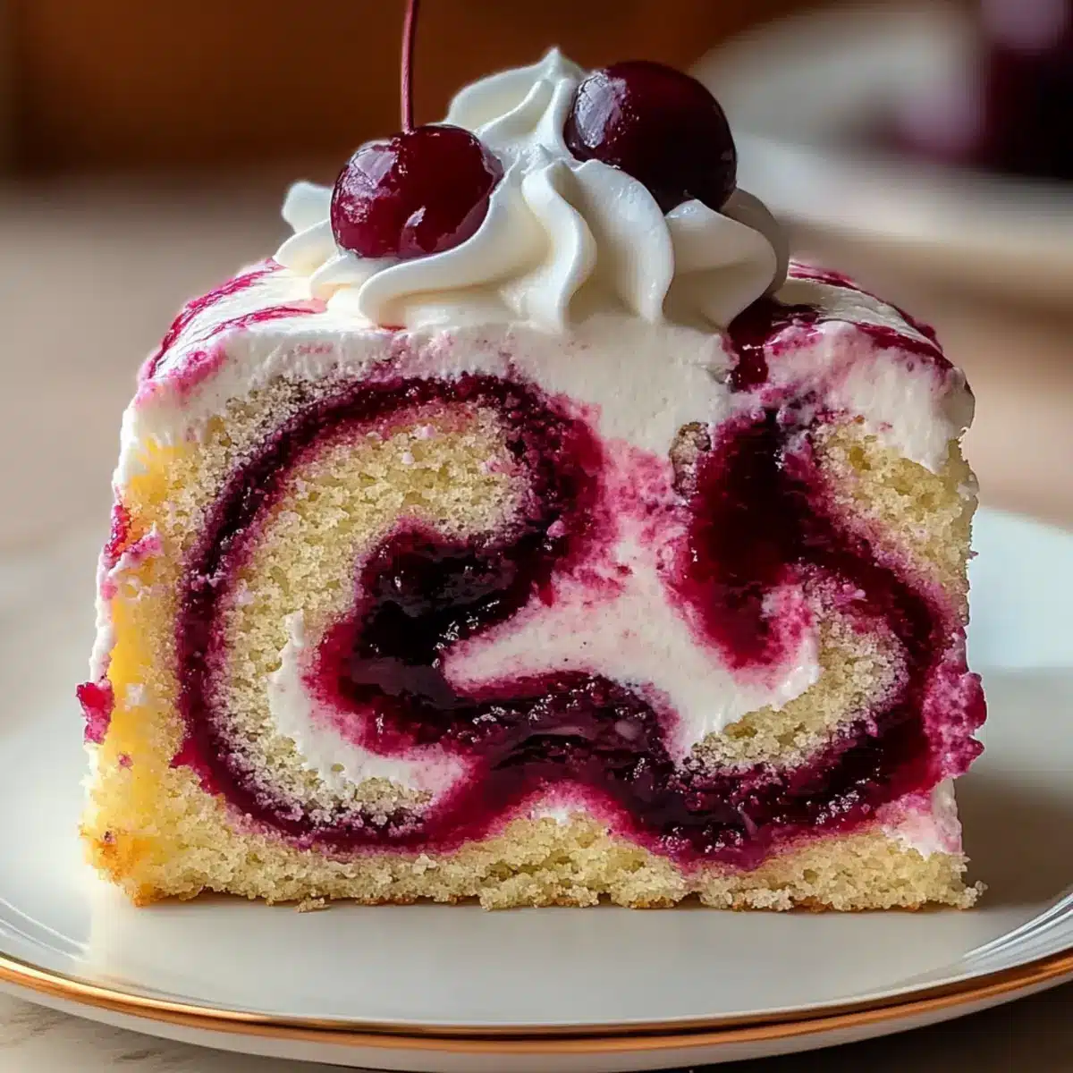 Whipped Cream or Cool Whip – Provides a fluffy, creamy finish that complements the cake wonderfully; fresh cherries are a lovely garnish to elevate presentation.