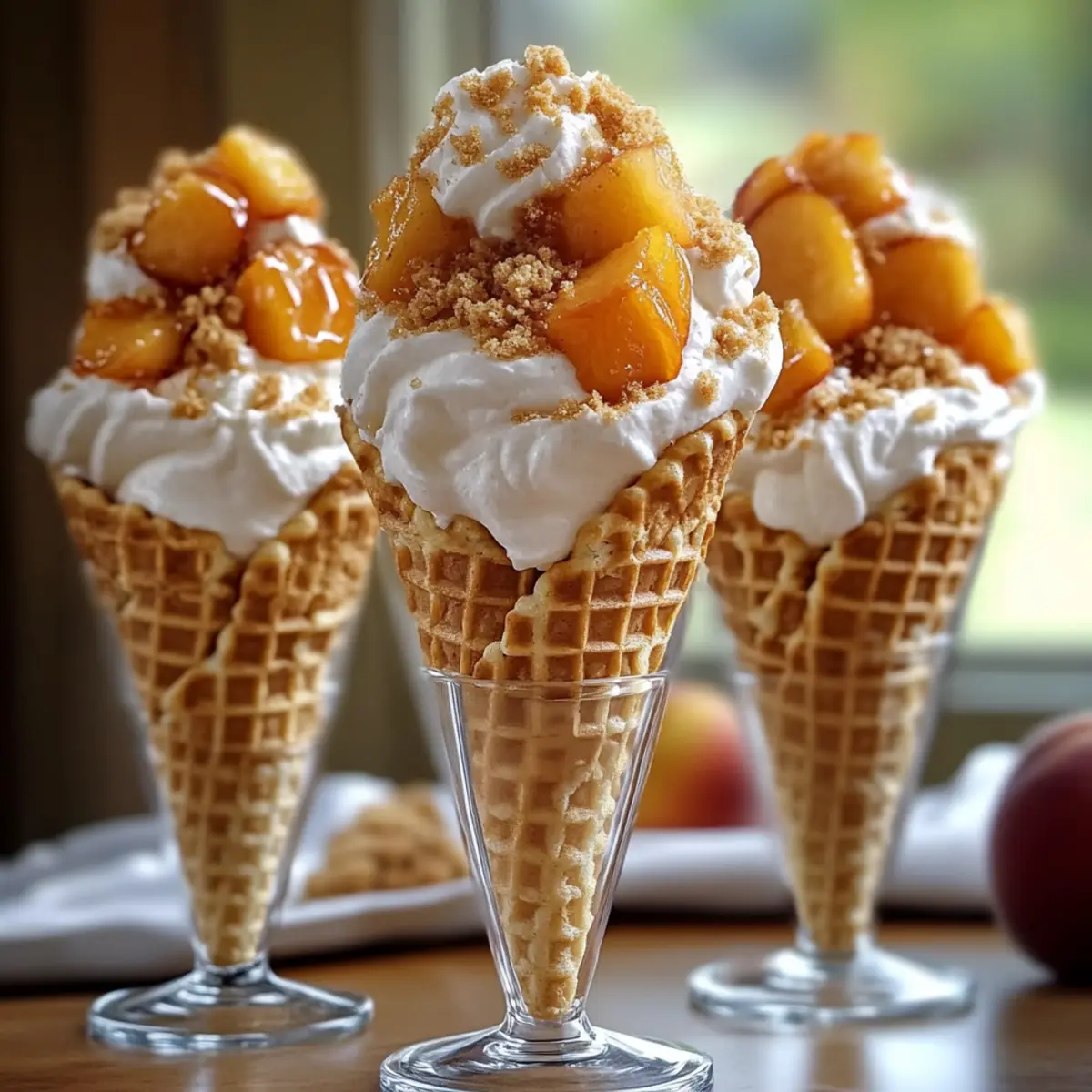 Prevent Sogginess: Always keep the peach topping and cheesecake filling separate until serving to ensure the cones remain crisp and enjoyable.
