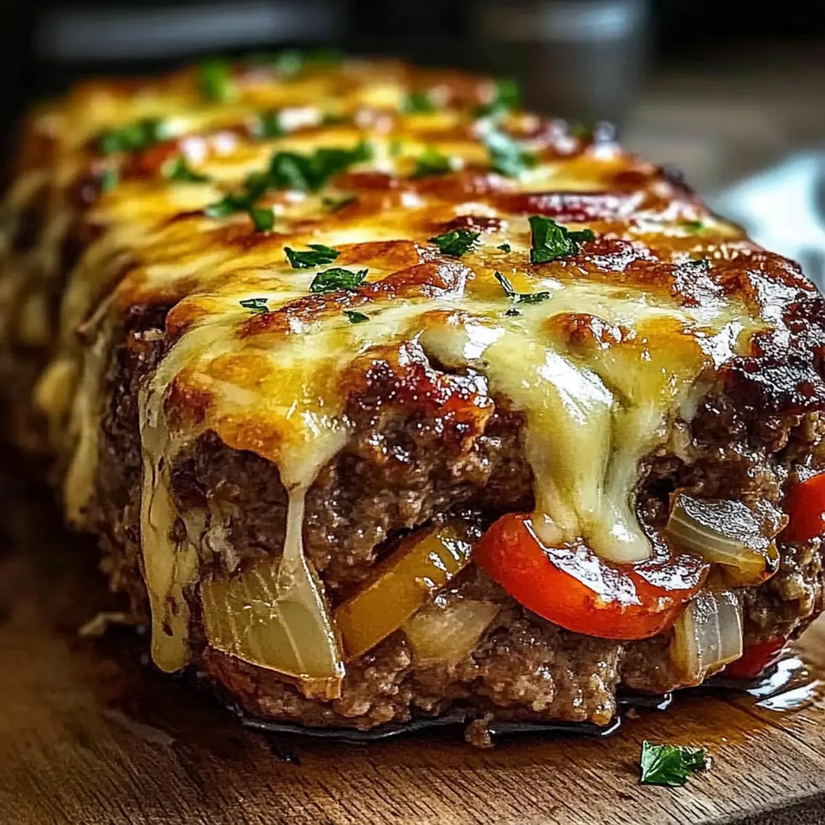 Once baked, remove the meatloaf from the oven and let it rest for 10 minutes. This crucial step allows the juices to redistribute, ensuring each slice of your Philly Cheesesteak Meatloaf remains moist and flavorful when served. Use this time to set the table or prepare any side dishes.