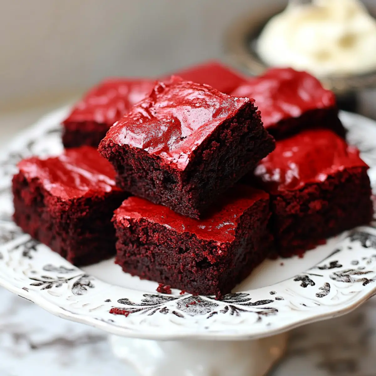 Spread a generous layer of frosting over the cooled Red Velvet Brownies using an offset spatula. Once frosted, slice into squares for serving. These brownies are sure to impress with their decadent flavor and beautiful presentation, perfect for any occasion!
