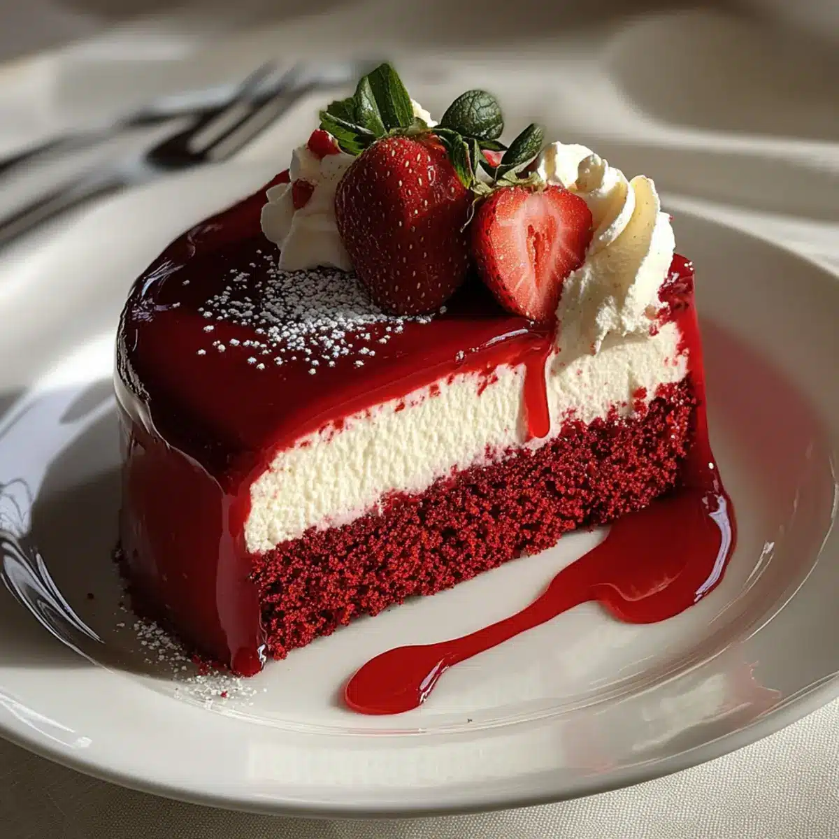 Cooling Time: Allow the cake to cool completely before spreading the cheesecake layer; this will help maintain the integrity of your beautiful Red Velvet Strawberry Cheesecake Delight.