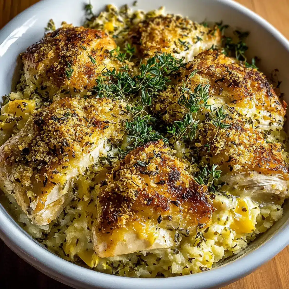 These Savory Baked Herb Chicken Casserole preparations are perfect for busy weeknights! You can prepare the chicken mixture and even cook the rice up to 24 hours in advance. Just sauté your aromatics, brown the chicken, and stir in the cream and seasonings; then combine it with cooked rice and store in an airtight container in the fridge. When it’s time to serve, transfer the mixture to a greased casserole dish, top with breadcrumbs and cheese, and bake directly from the refrigerator, adding a few extra minutes to the cooking time. This way, you’ll enjoy just-as-delicious comfort food without the last-minute cooking stress!