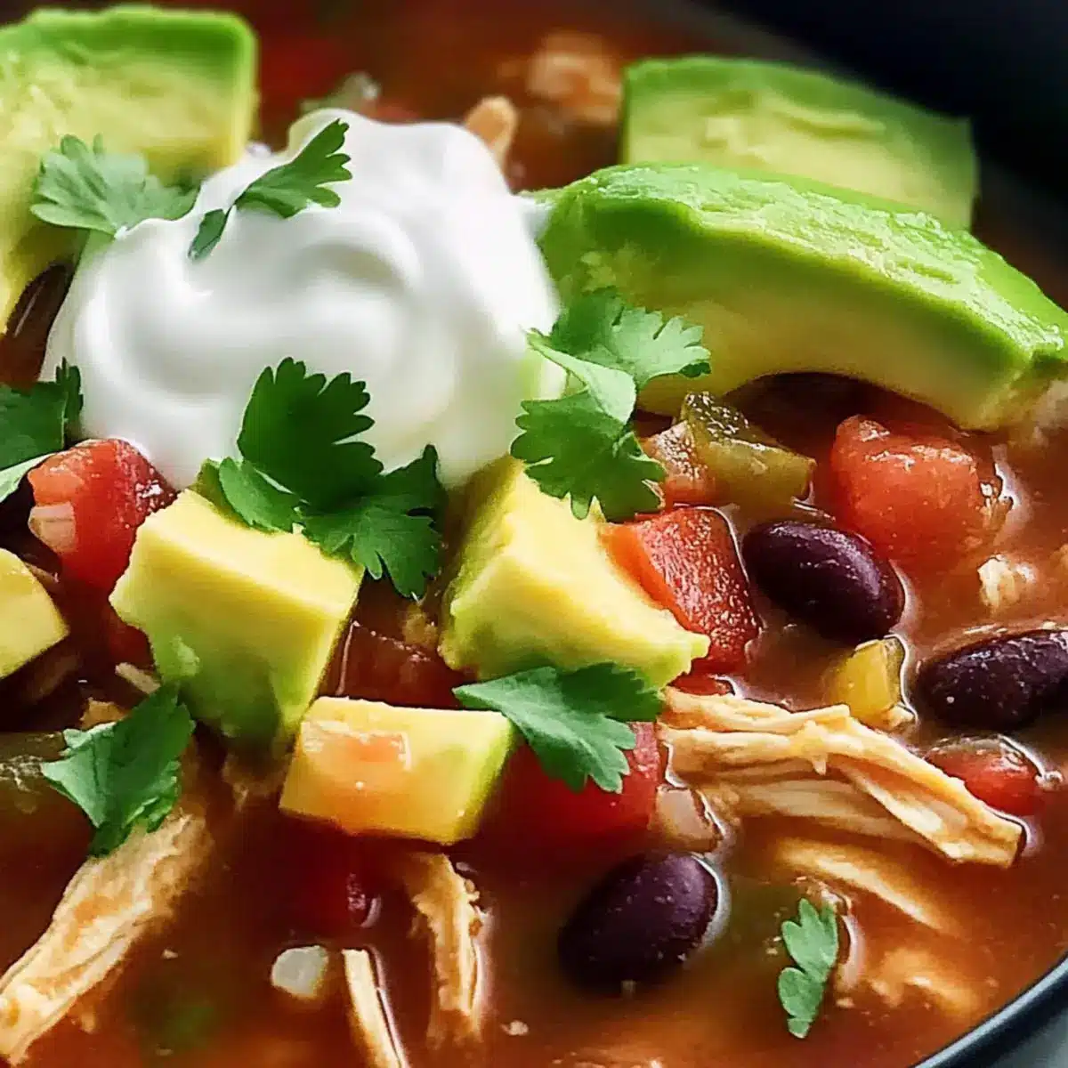 Ladle the soup into bowls, and let everyone customize their servings! Top with a dollop of sour cream, slices of ripe avocado, a sprinkle of cilantro, and grated cheese. Those delightful toppings not only enhance the flavor but also elevate the presentation of your Slow Cooker Chicken Tortilla Soup, making it a true feast for the senses.