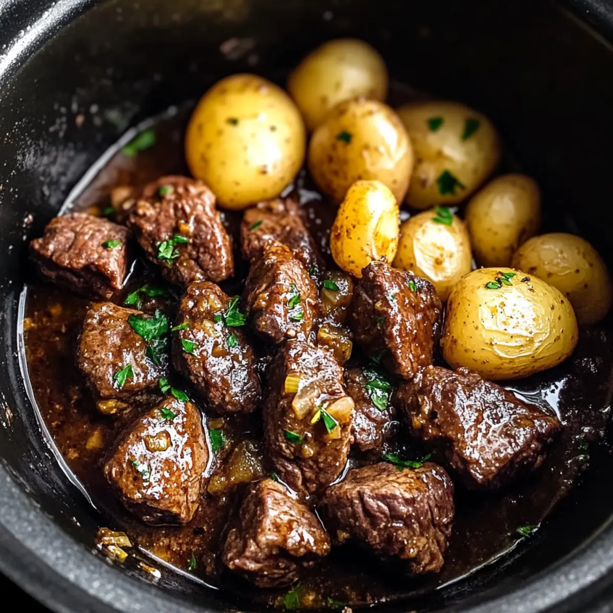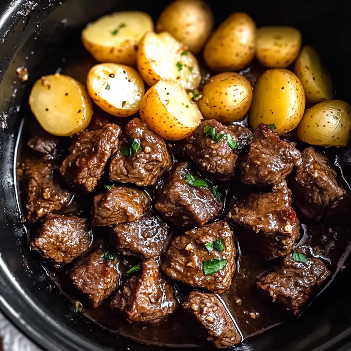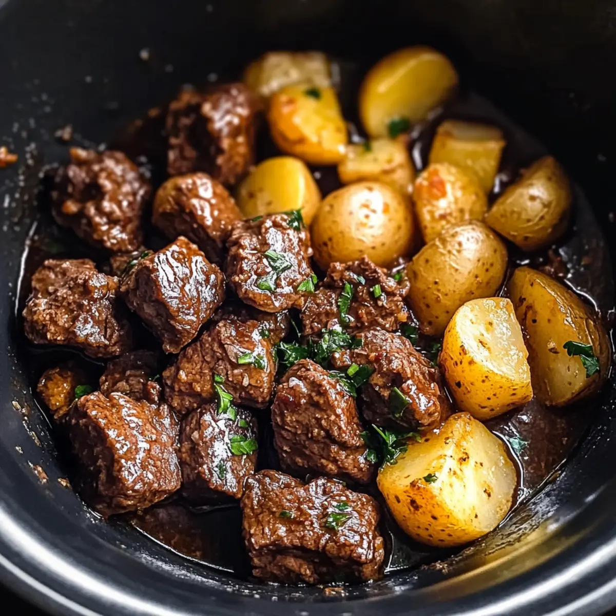 Slow Cooker Garlic Butter Beef Bites with Potatoes Delight
