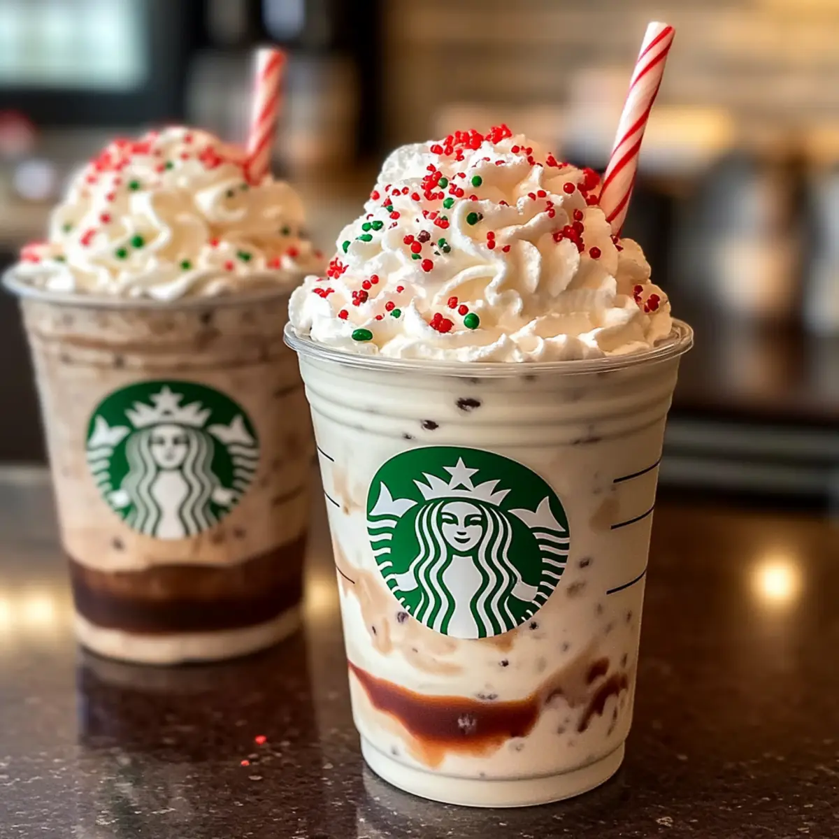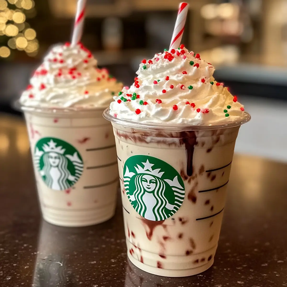 Garnish Creatively: Fun toppings like sprinkles and crushed candy canes enhance visual appeal, making your frappuccino festive and Instagram-worthy!