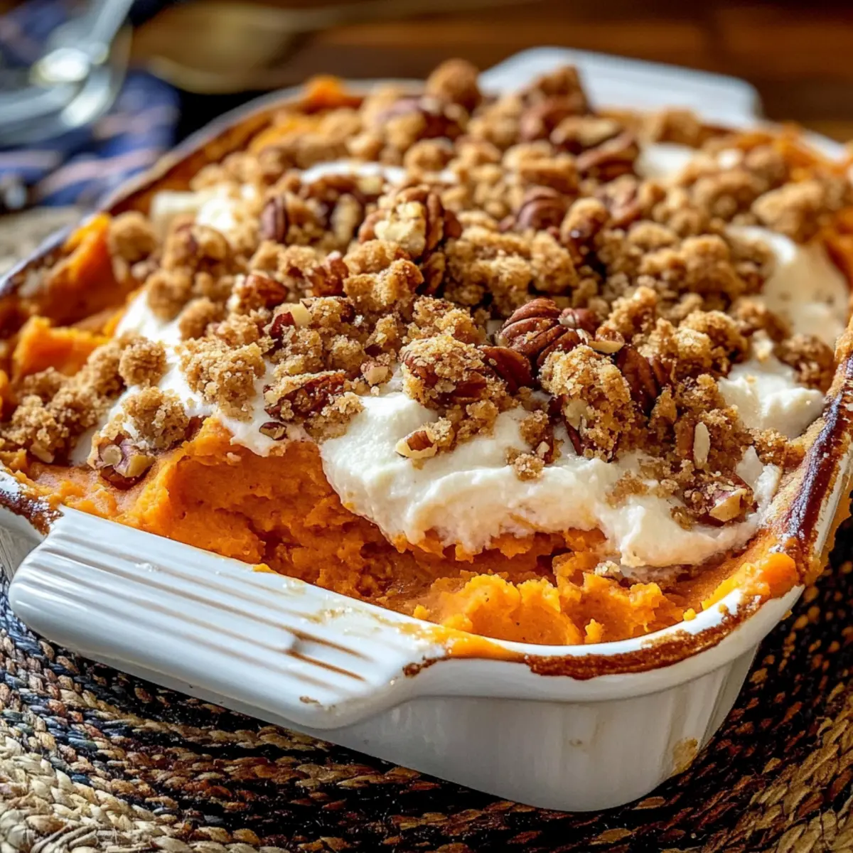 Irresistibly Creamy Sweet Potato Casserole with Pecan Streusel