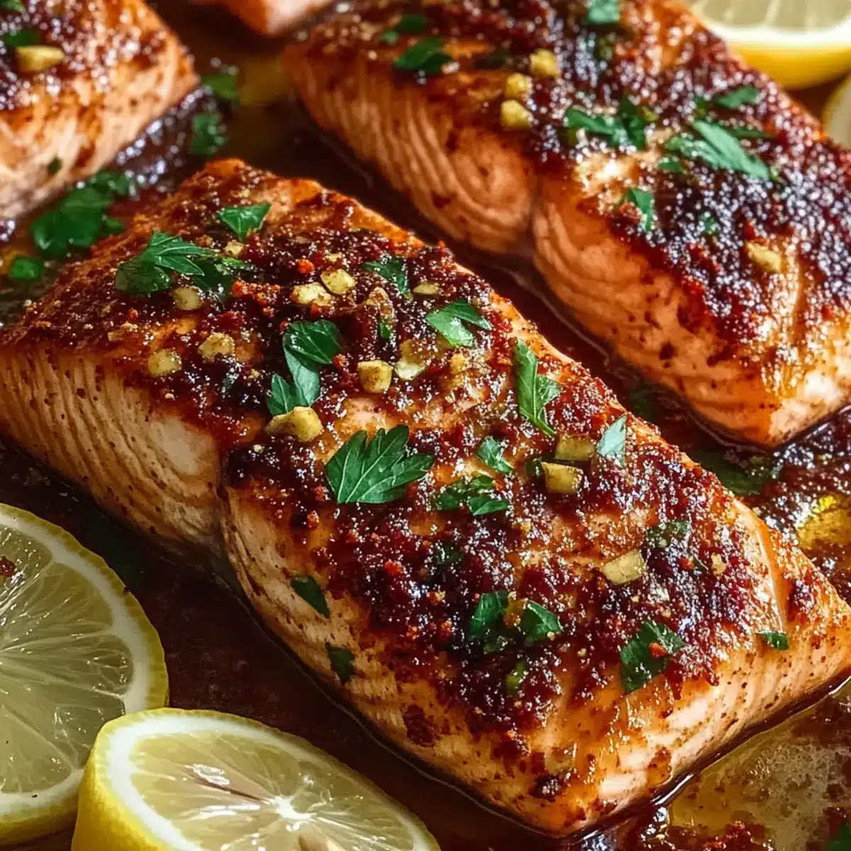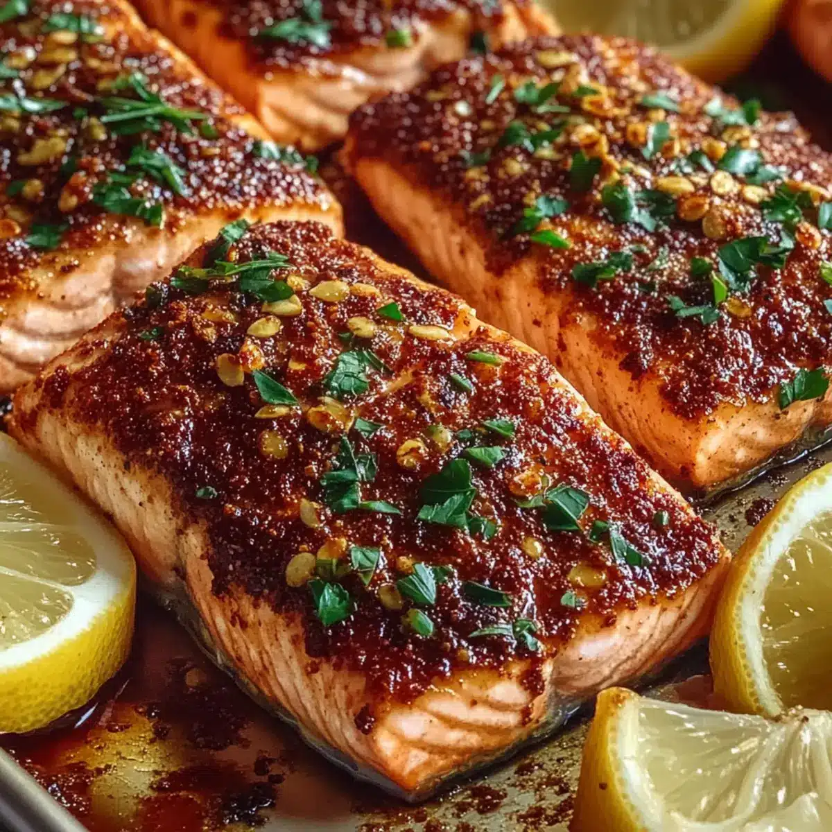 Once baked, carefully transfer the Sweet Sumac Salmon to serving plates. Sprinkle with fresh parsley for a bright pop of color and flavor. Serve with lemon wedges on the side, allowing everyone to squeeze fresh lemon juice over their salmon for an extra zing. This final touch brings out the dish’s deliciousness, making it perfect for impressing your family and friends.