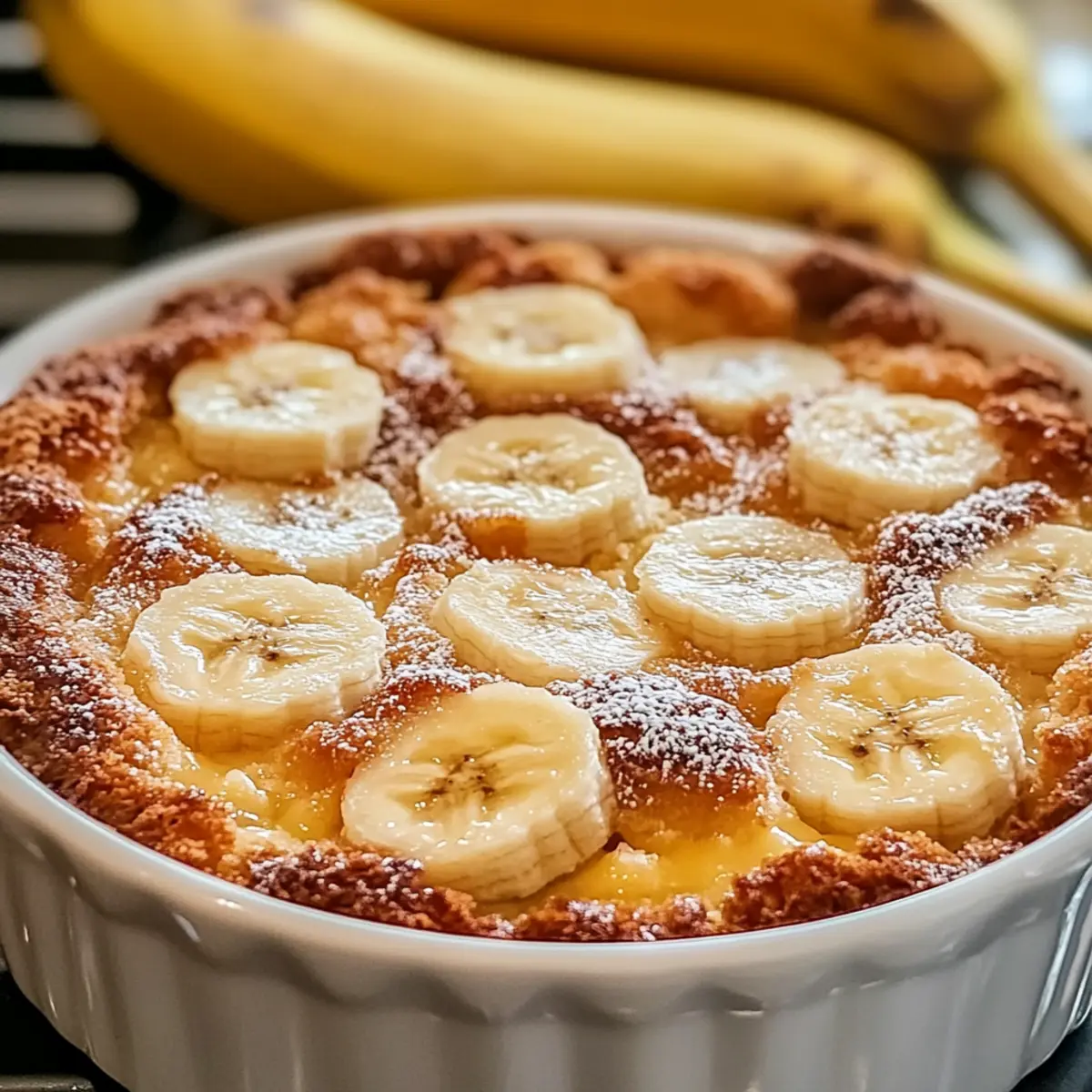 Pour the batter into your prepared baking dish, spreading it out evenly across the bottom. Next, gently spoon the banana mixture over the batter, but resist the urge to stir or mix the layers together. Trust the process! As it bakes, the batter will rise over the bananas, forming a lovely crust.
